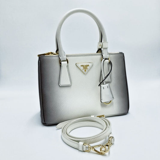 Prada Galleria Saffiano Small Bianca con sfumature grigie