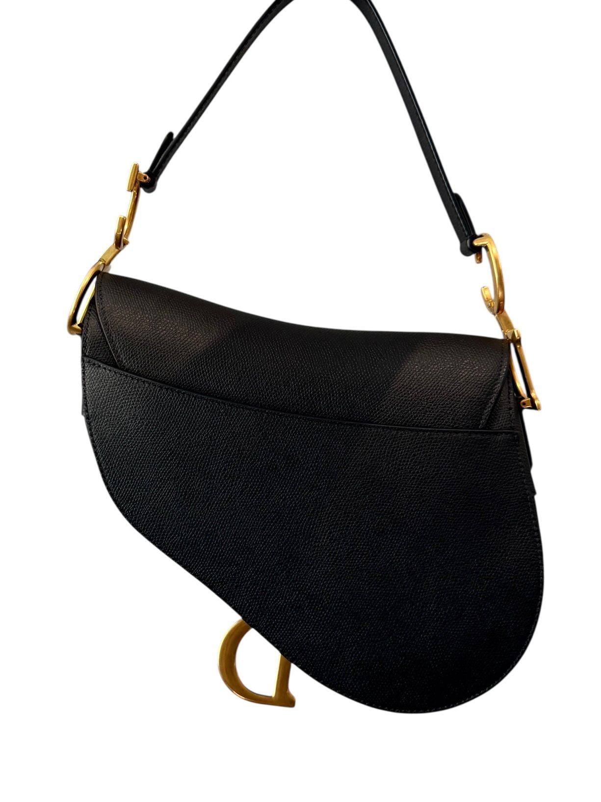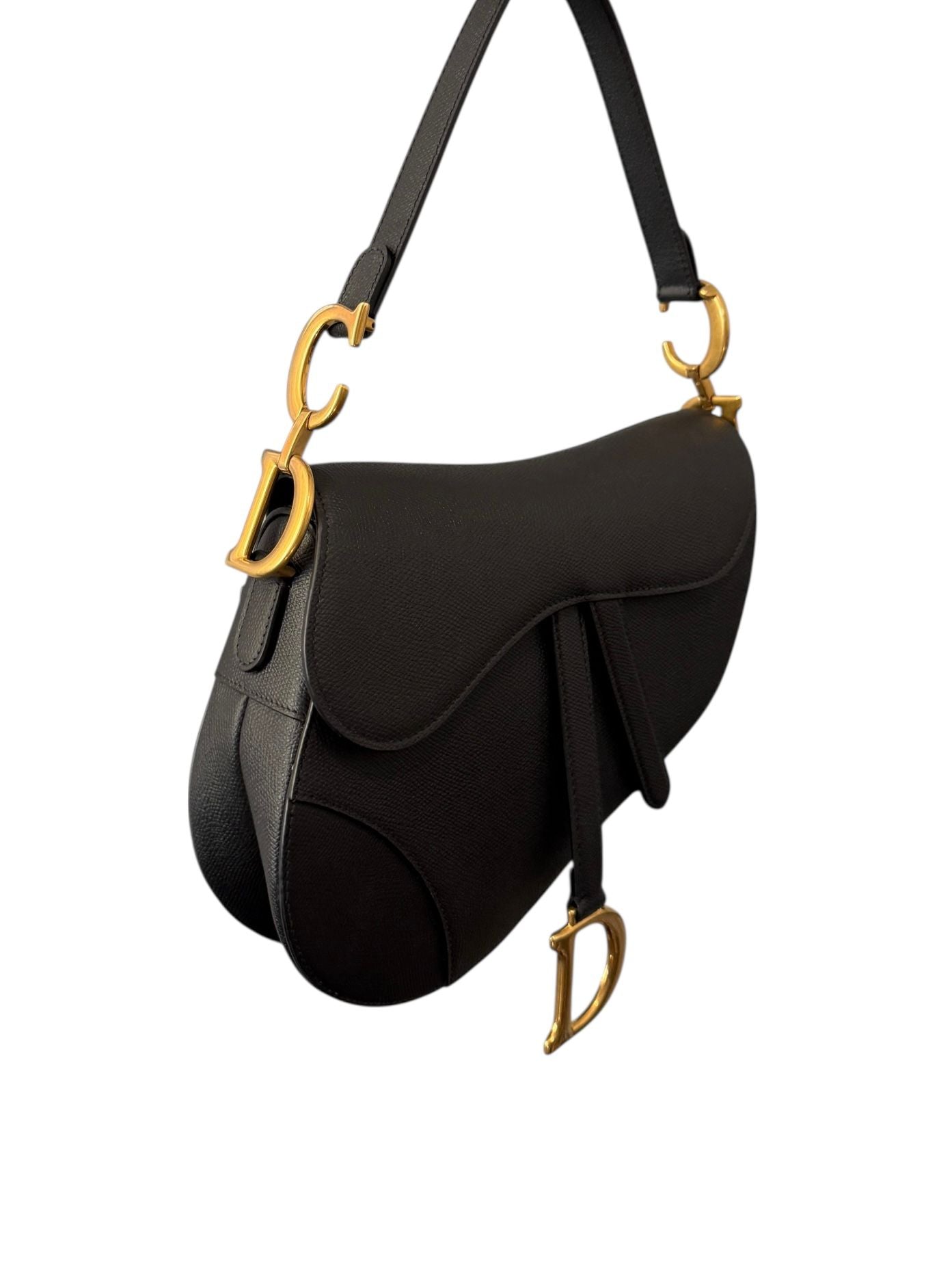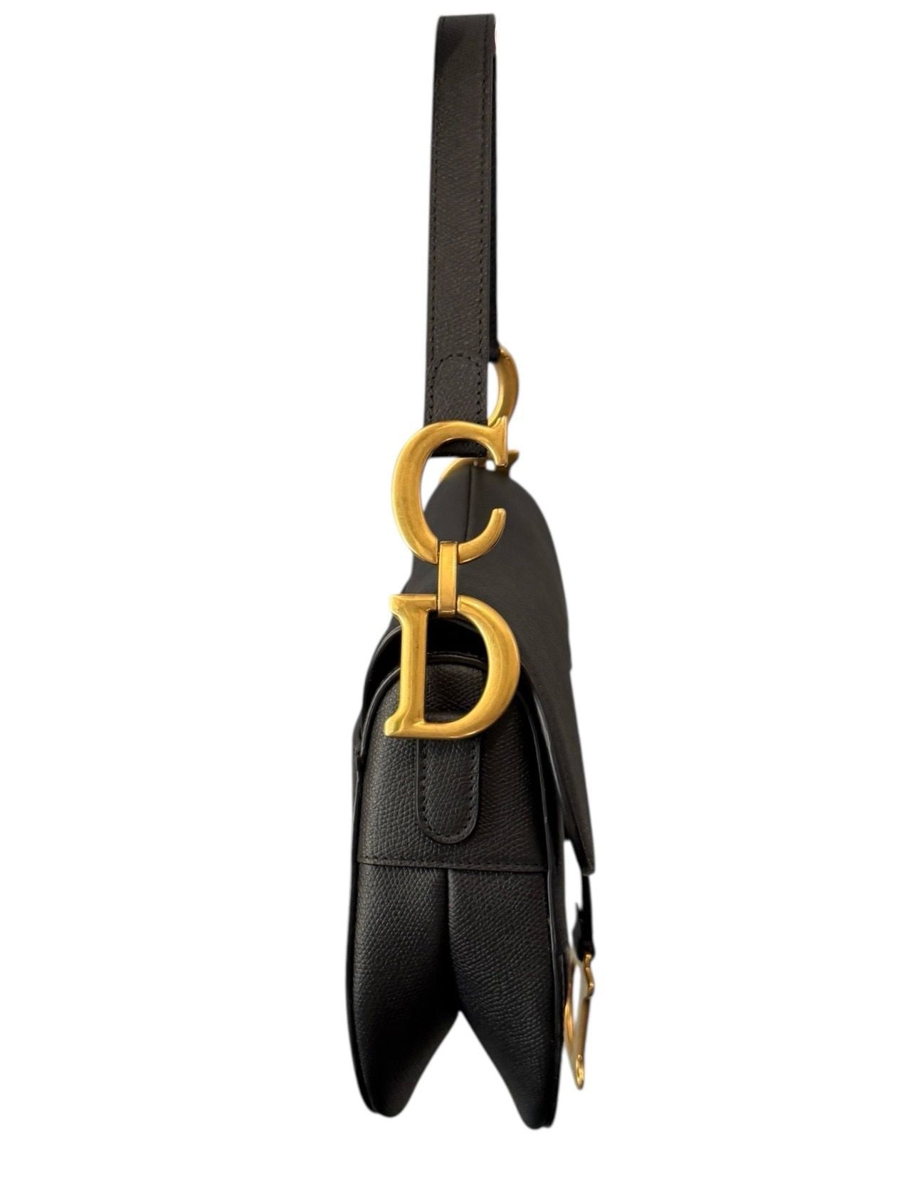A timeless icon of the Maison, the Dior Saddle Bag is crafted from fine black calfskin, with the unmistakable saddle shape that has made it a success.