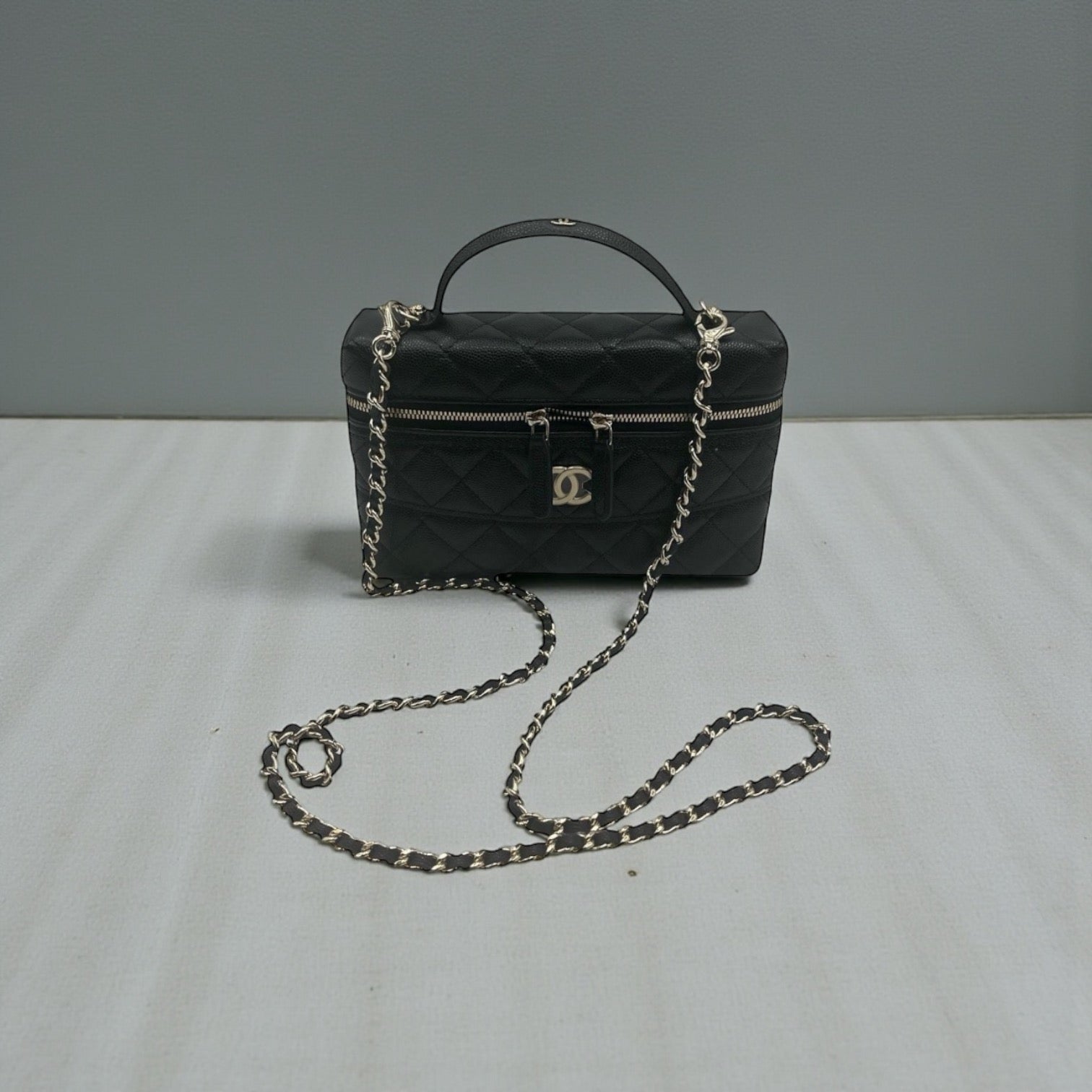 Perfetta per custodire gli essenziali quotidiani, questa Chanel Vanity Black combina funzionalità e glamour, diventando un must-have per ogni amante della Maison.