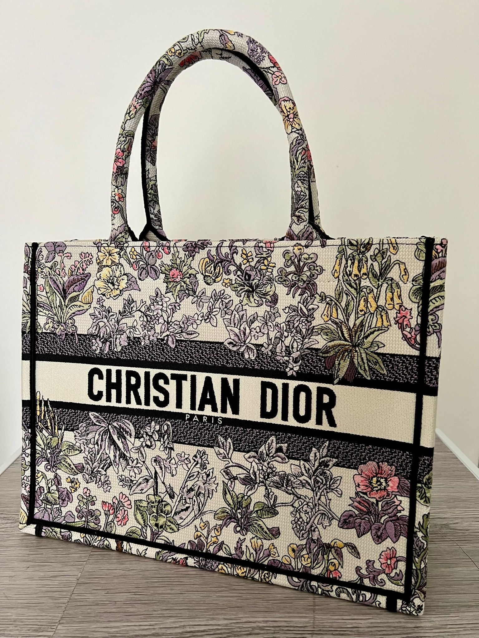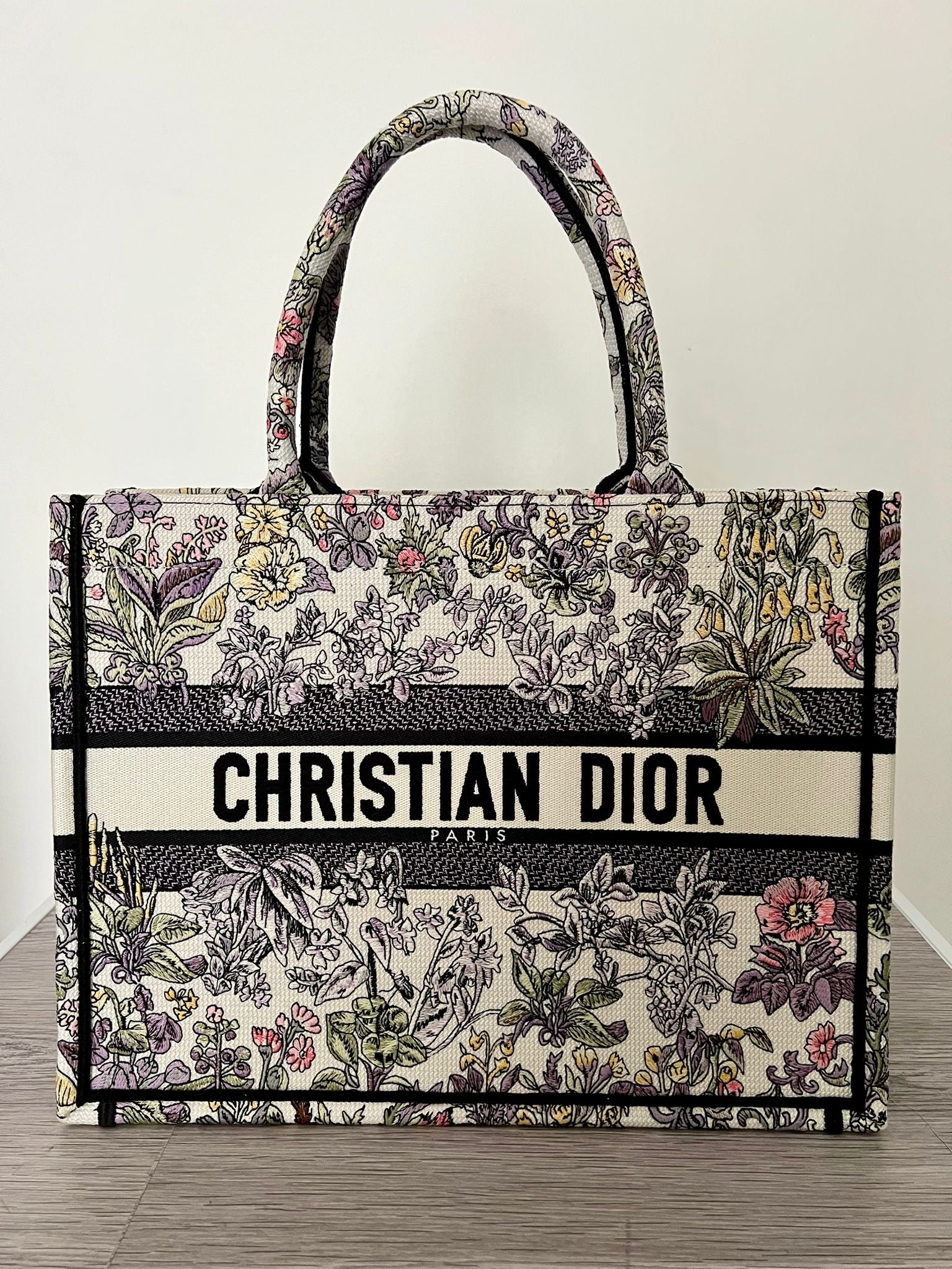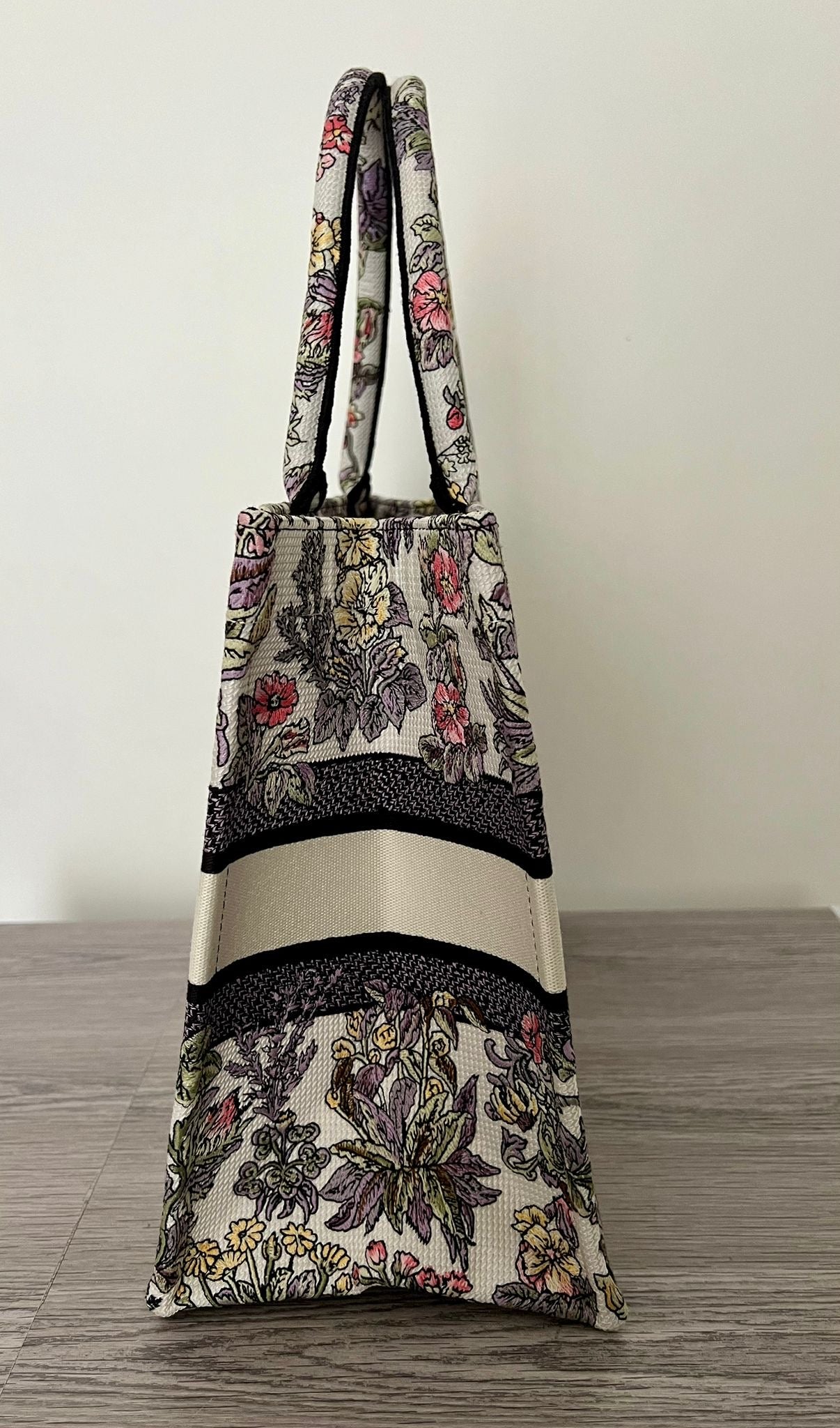 The Dior Book Tote medium is an iconic bag featuring a structured silhouette and the famous ecru and gray Toile de Jouy embroidery that embellishes every detail. The motif, featuring stylized animals and trees, highlights Dior's craftsmanship, combining elegance and functionality.