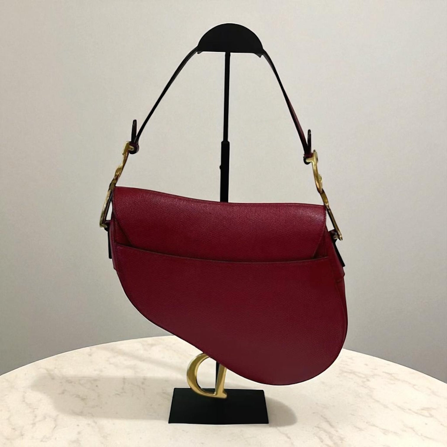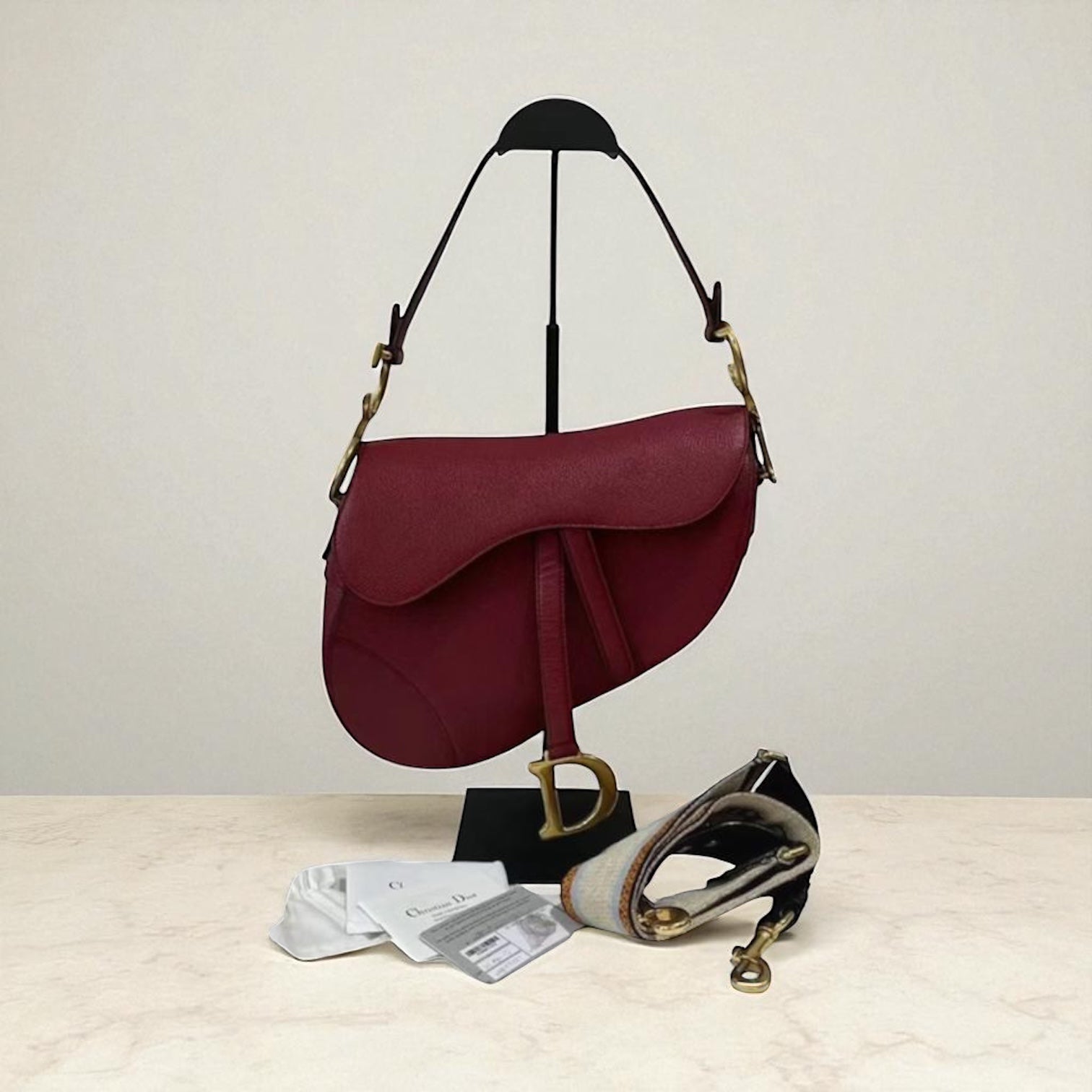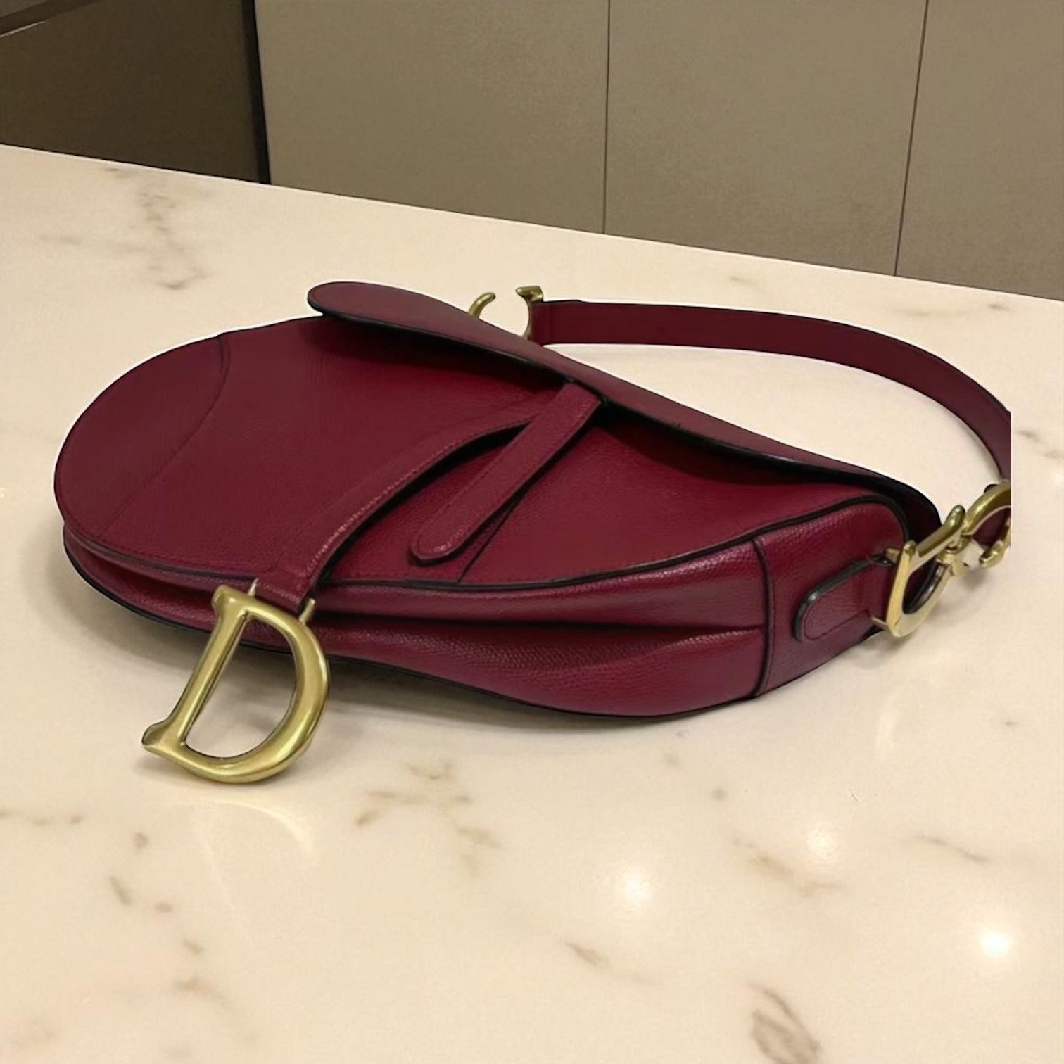 The Dior Saddle Bag , an icon of the House, stands out for its unique and timeless shape. Crafted from elegant burgundy leather , it is a refined and versatile accessory, perfect for enhancing any look with distinctive style.