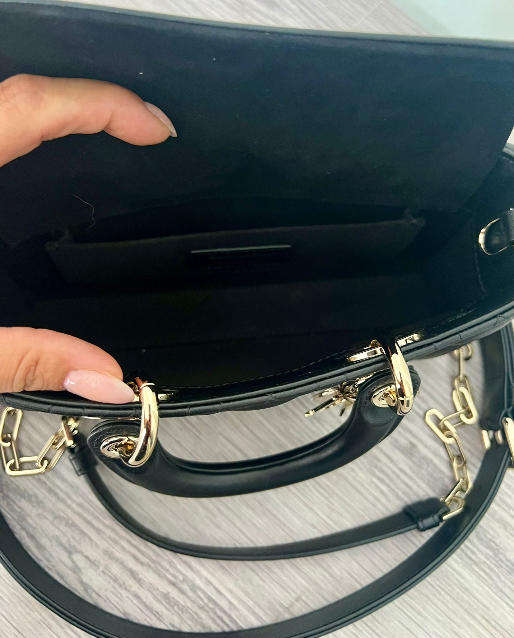 - Composition: Lambskin with iconic Cannage motif