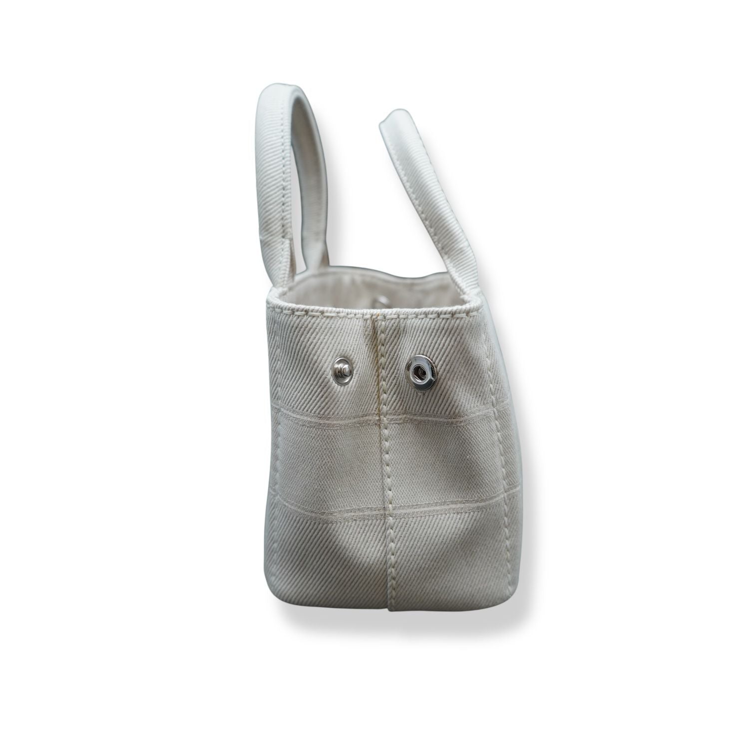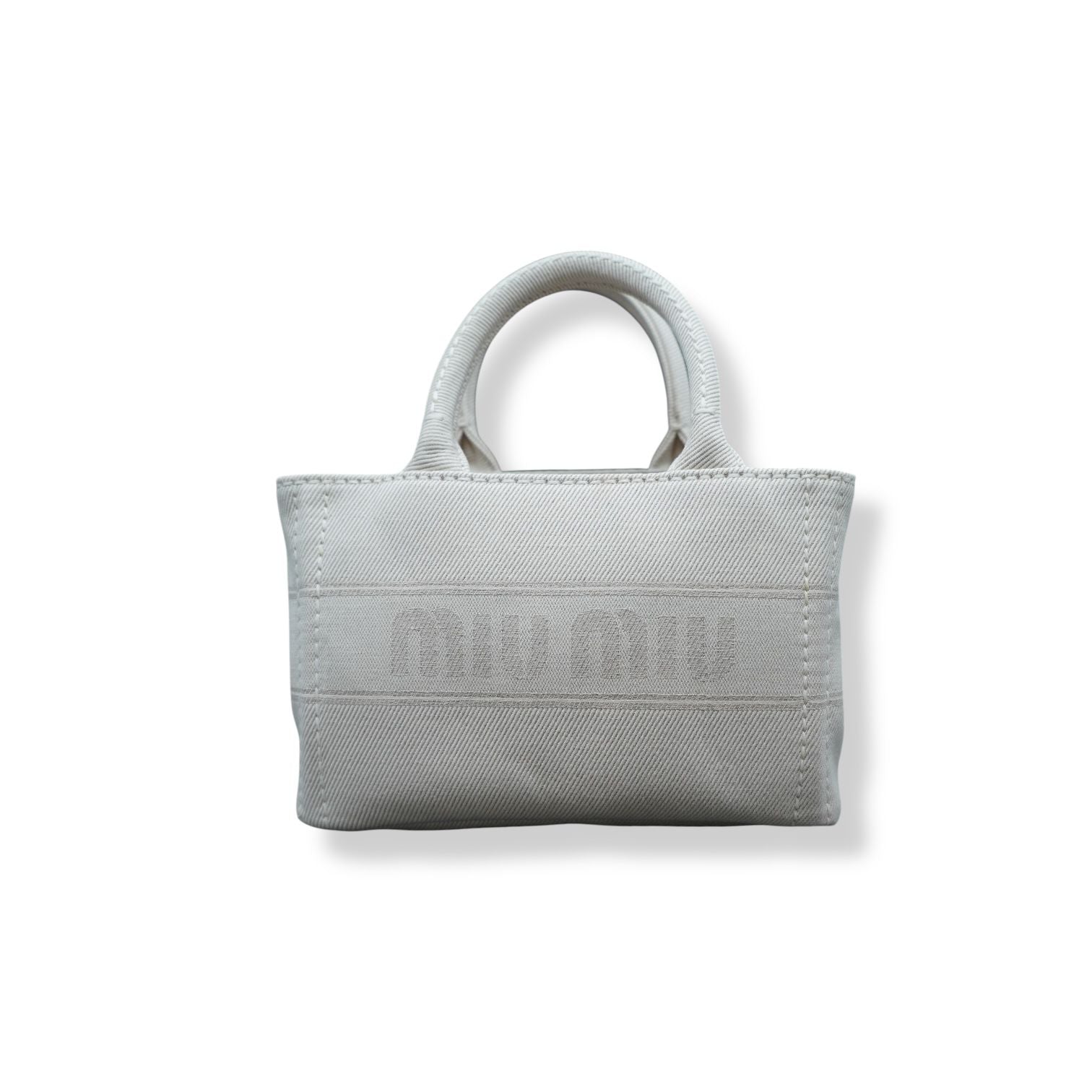 This beige canvas Miu Miu bag strikes the perfect balance between style and functionality. Lightweight and roomy, it's perfect for completing minimalist outfits with a touch of casual elegance. The tone-on-tone logo adds a distinctive yet discreet detail.
