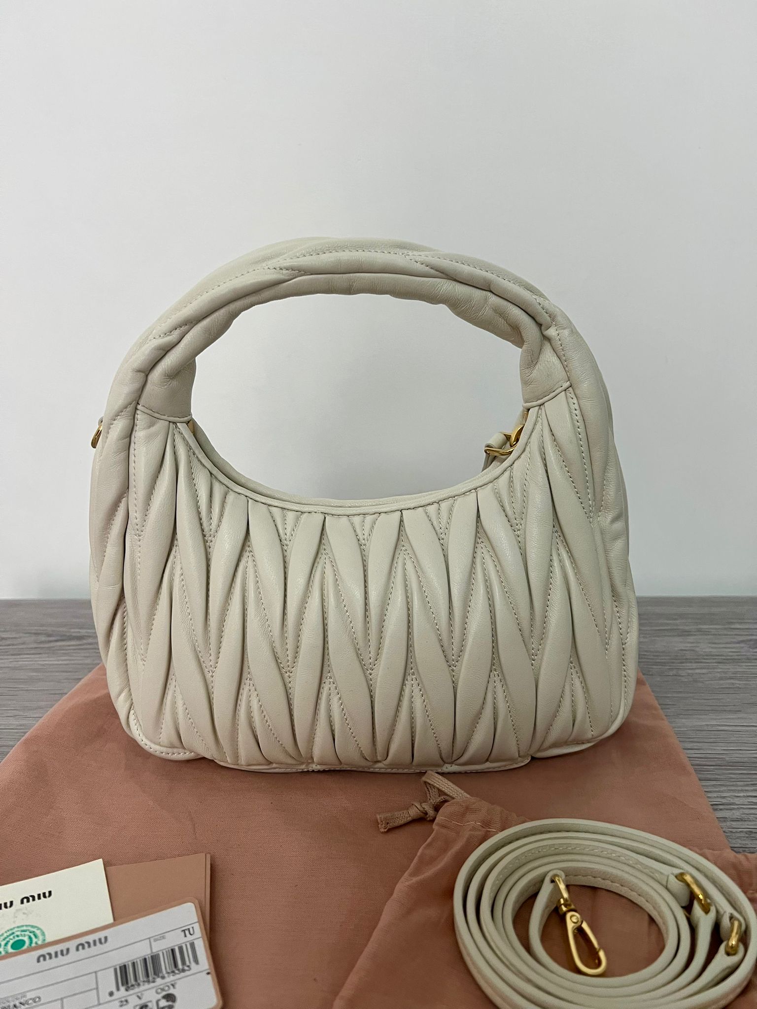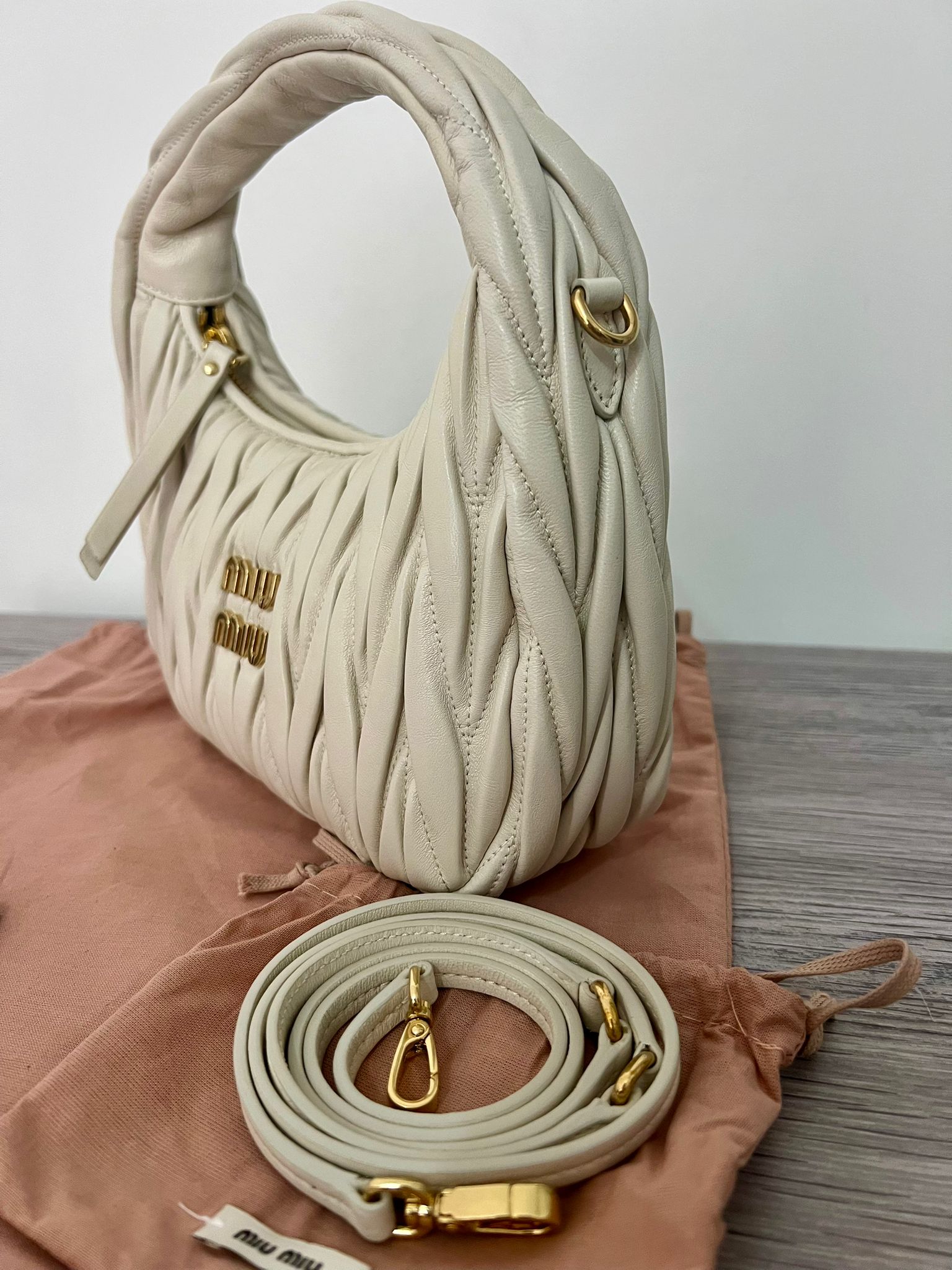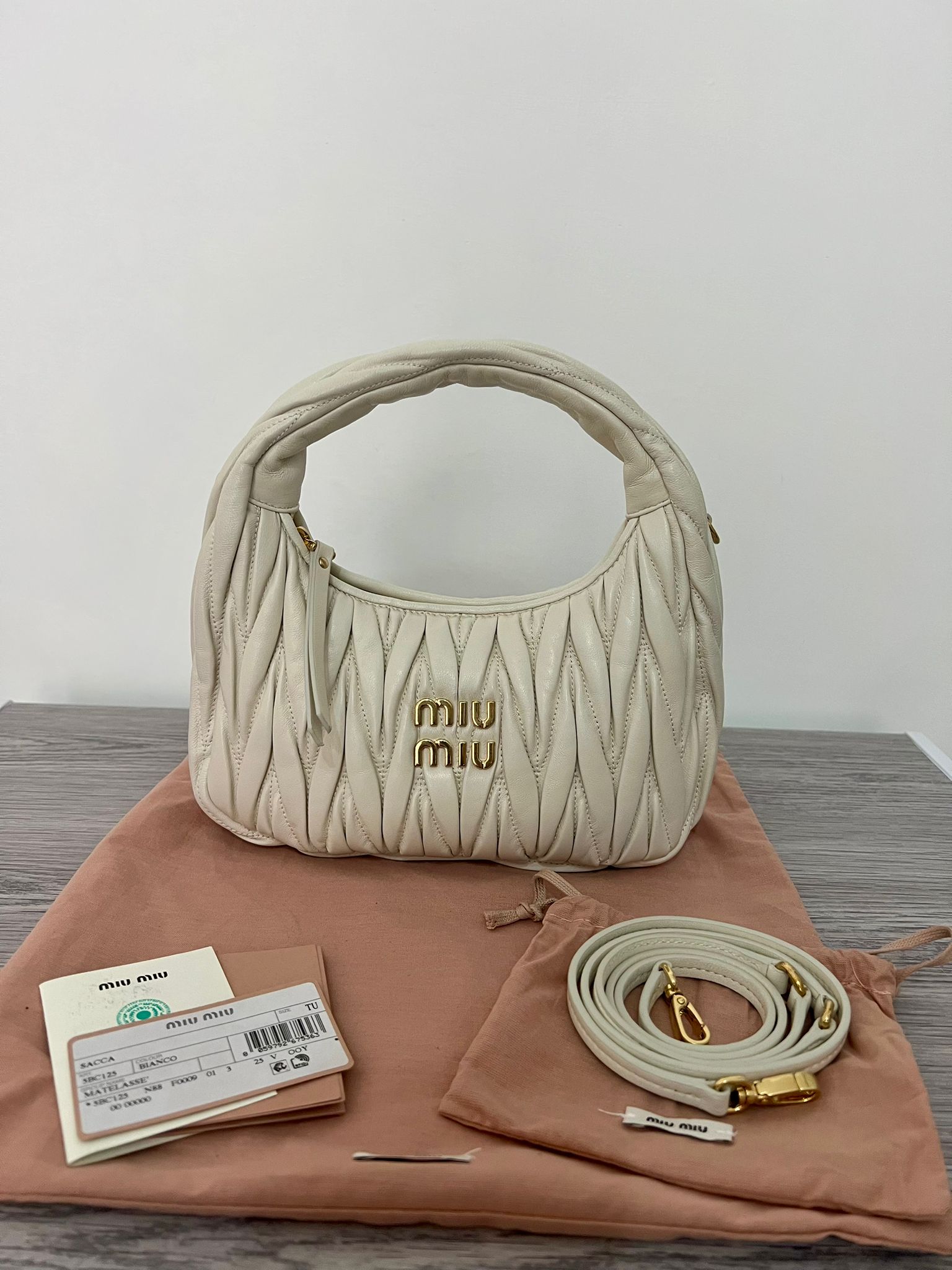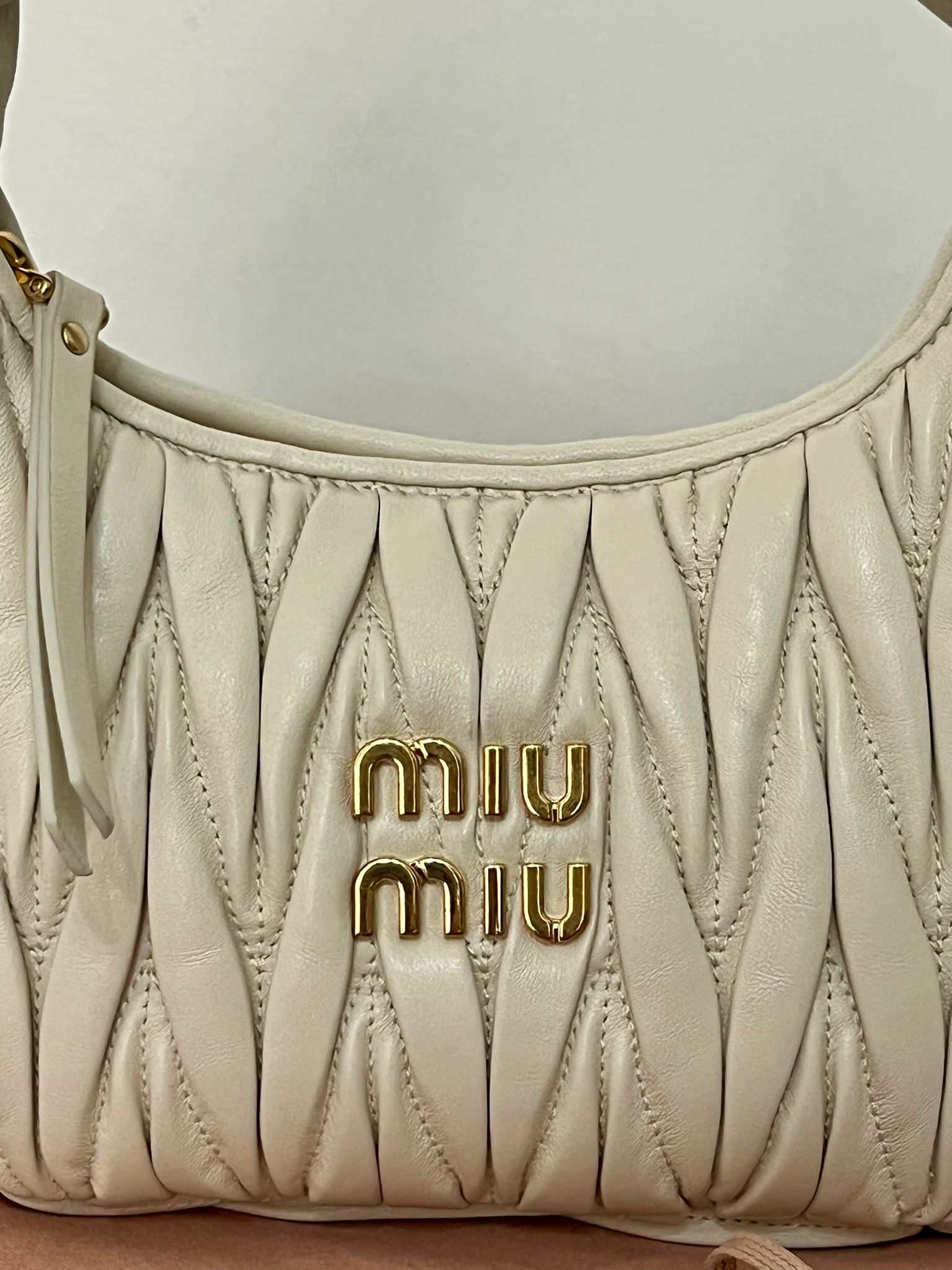 Miu Miu Mini Wander Hobo Bag in Matelassé Nappa - White