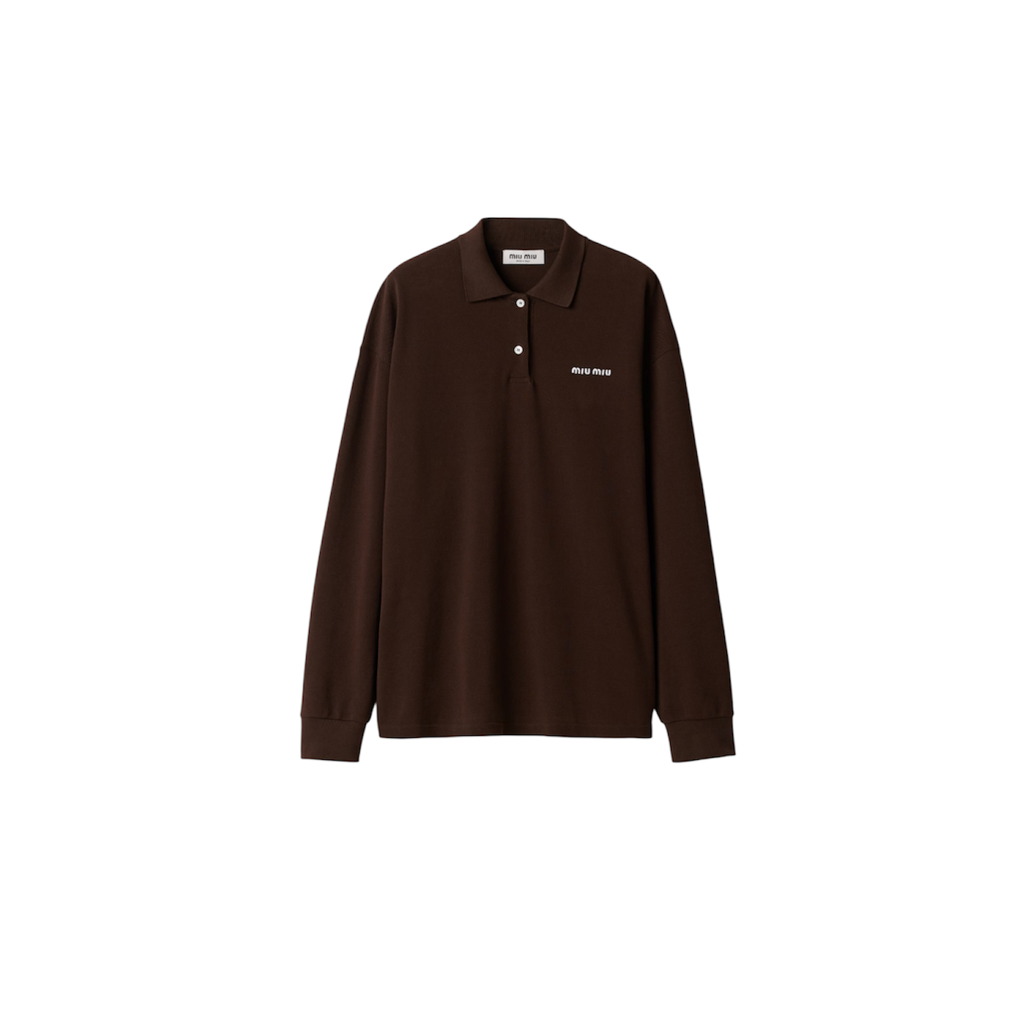An elegant and versatile polo shirt that combines casual style with the refined design typical of Miu Miu .