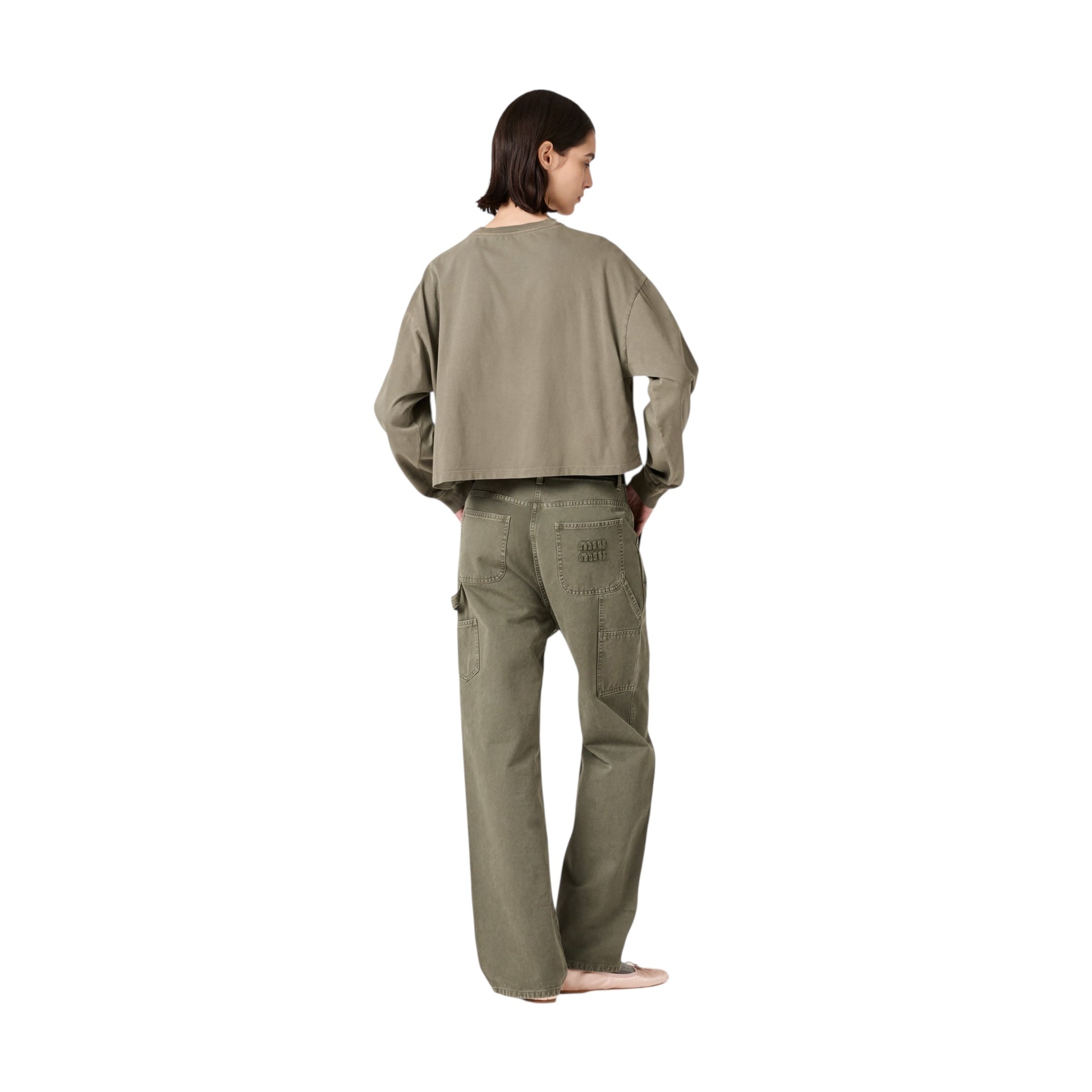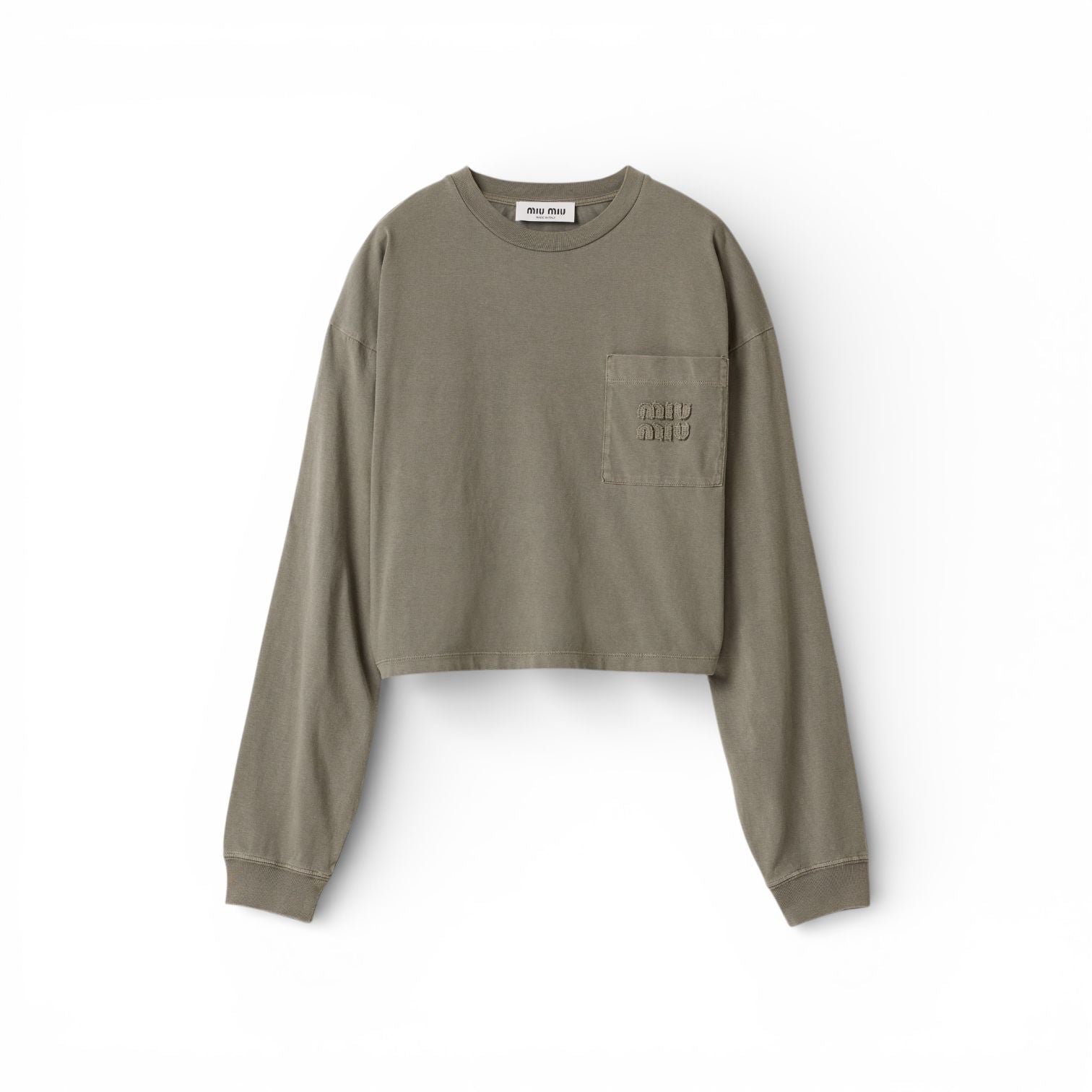 Miu Miu T-shirt Cropped Manica Lunga Oliva