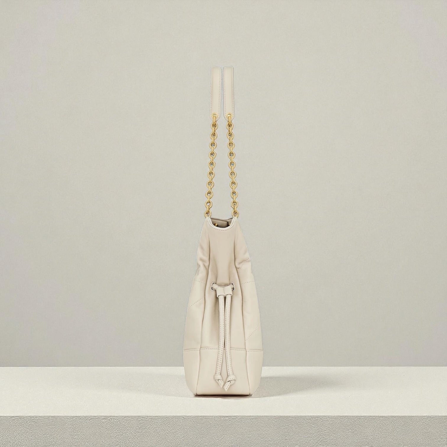 Eleganza e minimalismo si incontrano nella borsa Jamie Shopping piccola in pelle di agnello bianca. Un accessorio sofisticato, perfetto per chi cerca stile senza tempo e qualità artigianale.