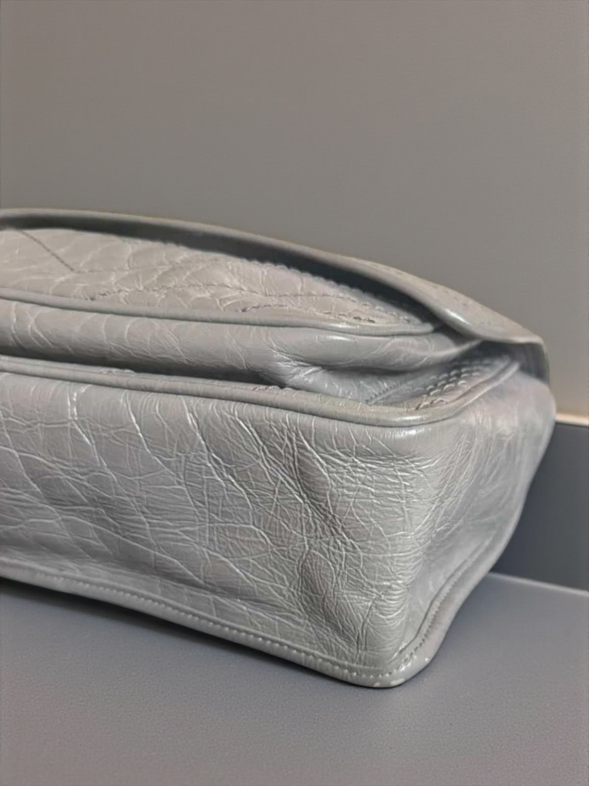Saint Laurent Niki Media in Pelle Grigia