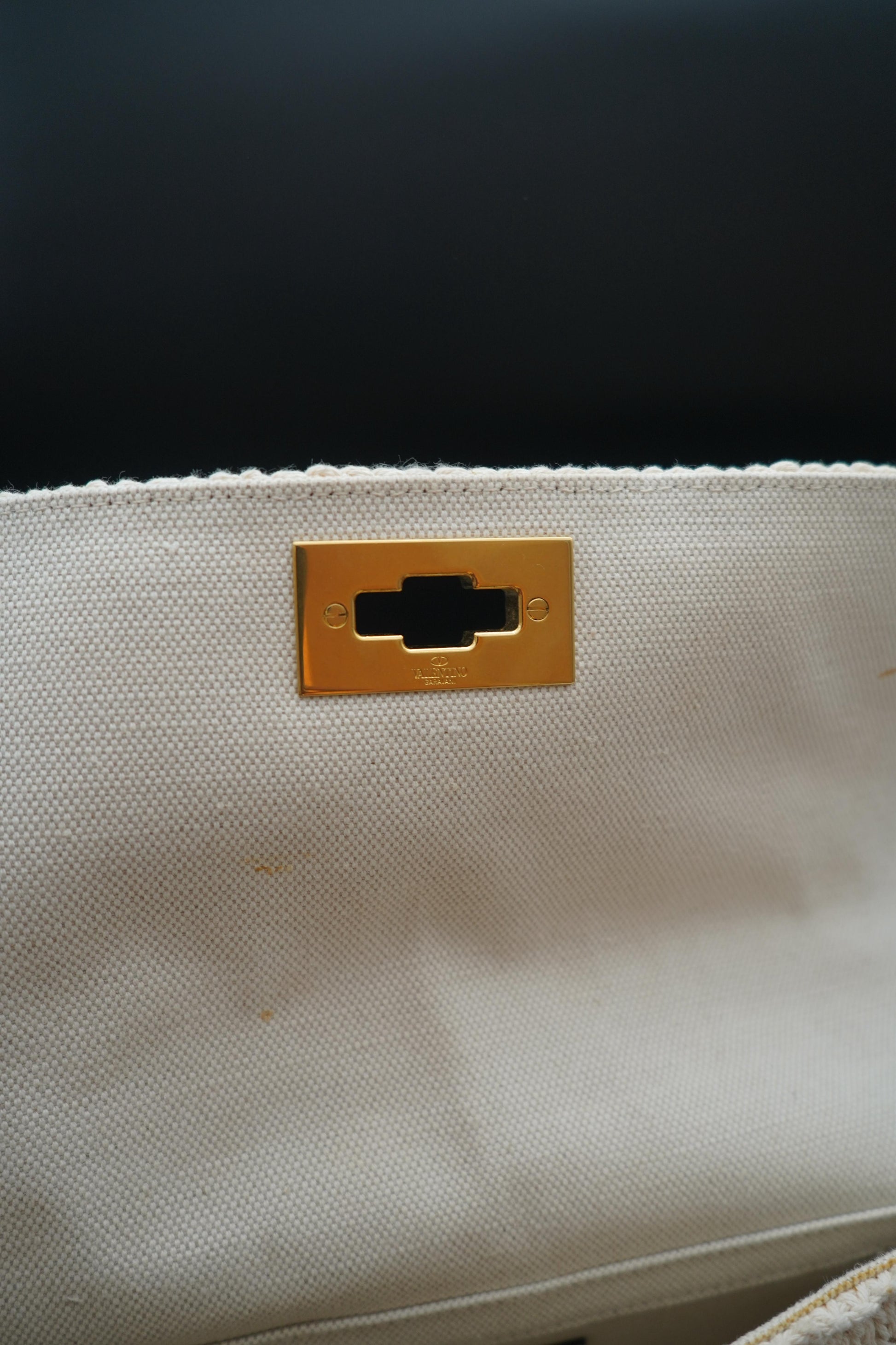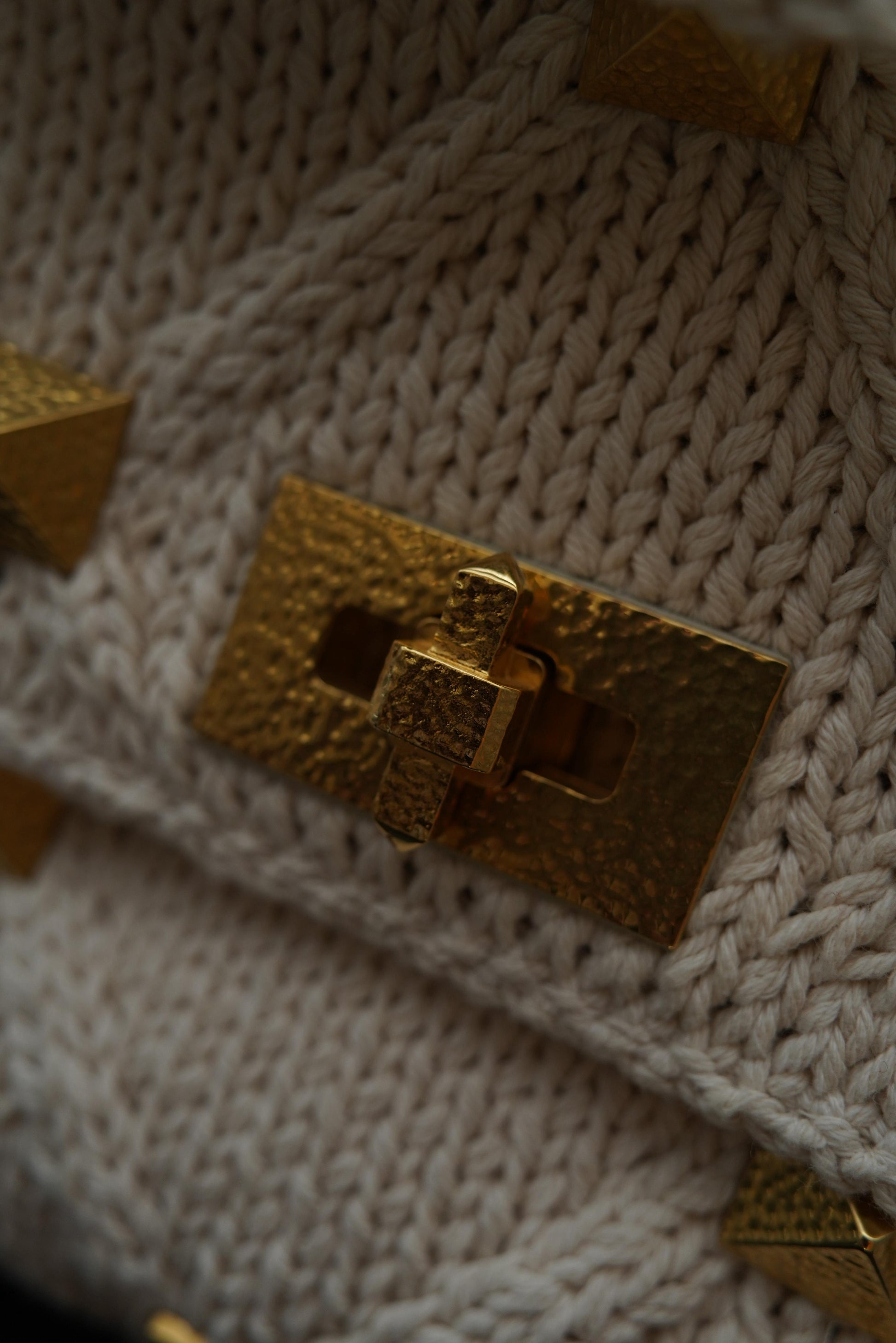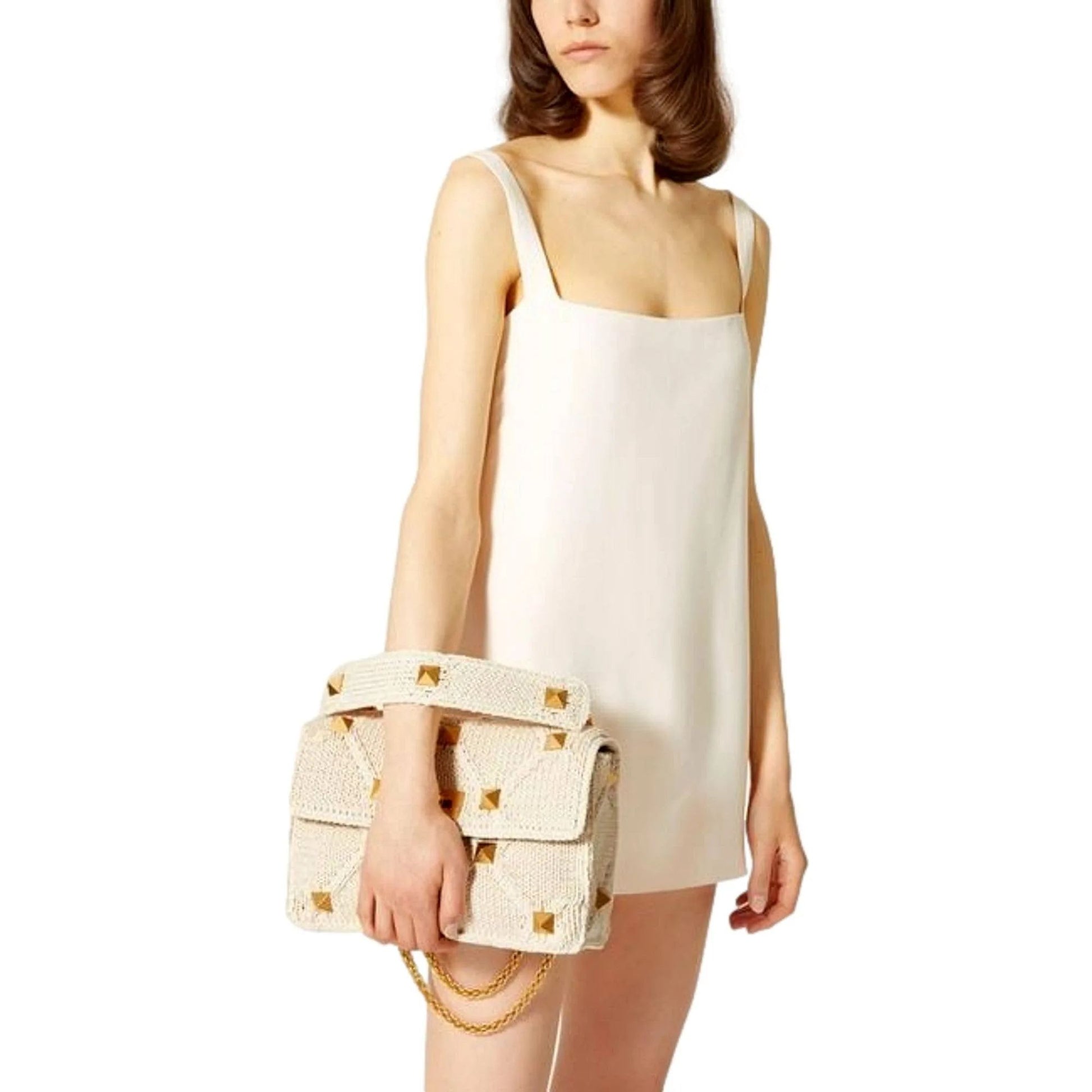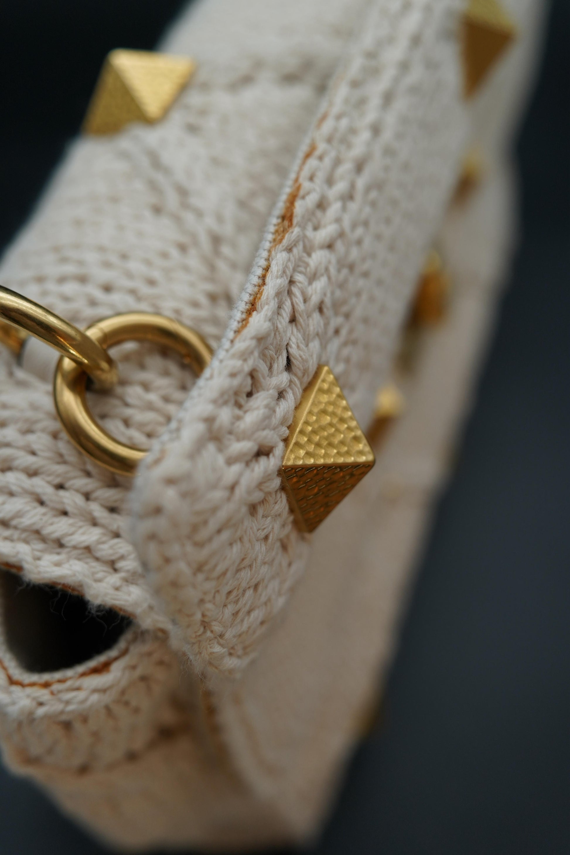 Refined and distinctive, the Valentino Garavani Roman Stud crochet bag combines the craftsmanship of crochet with the elegance of iconic studs. A perfect choice for those seeking an exclusive accessory with a bohemian and luxurious touch.
