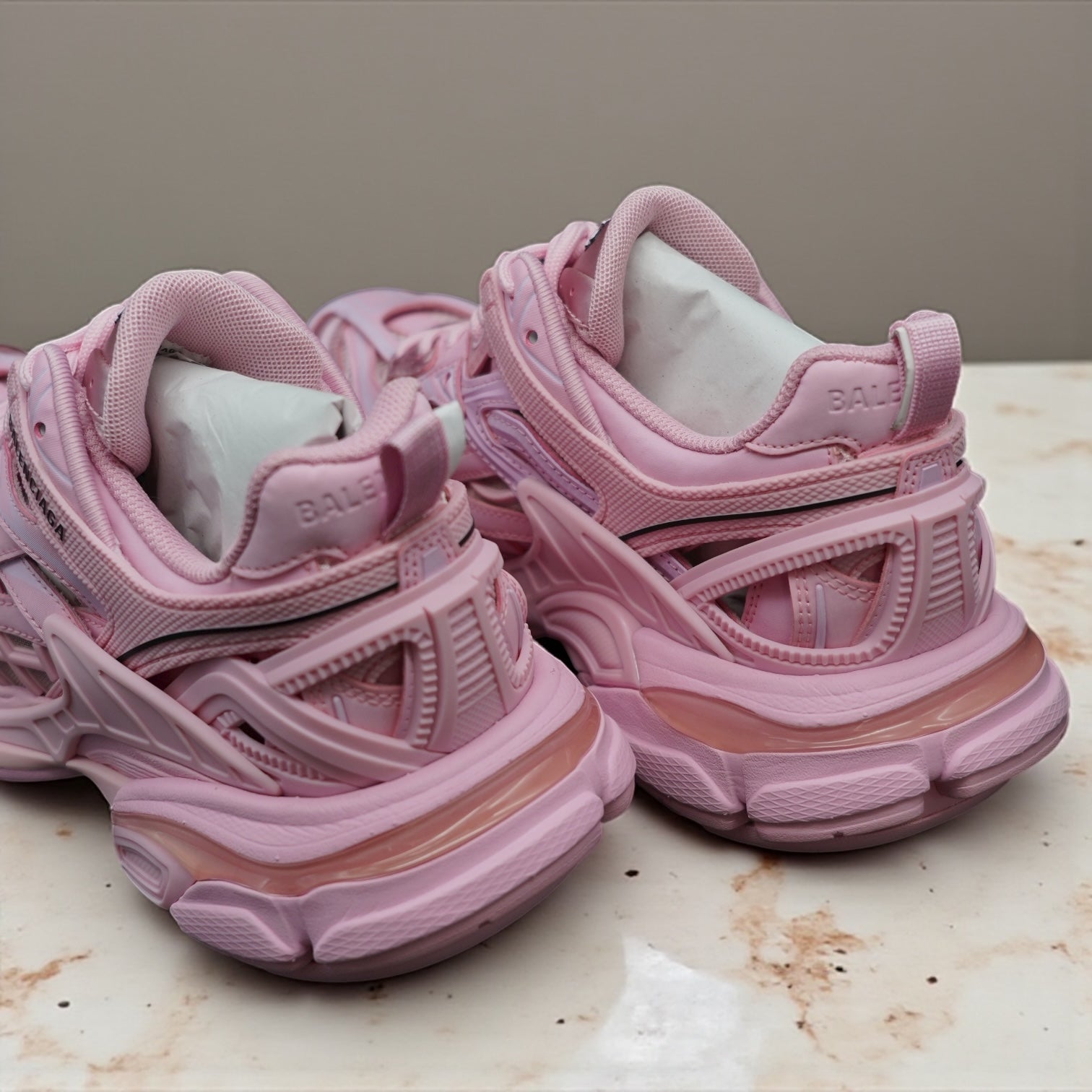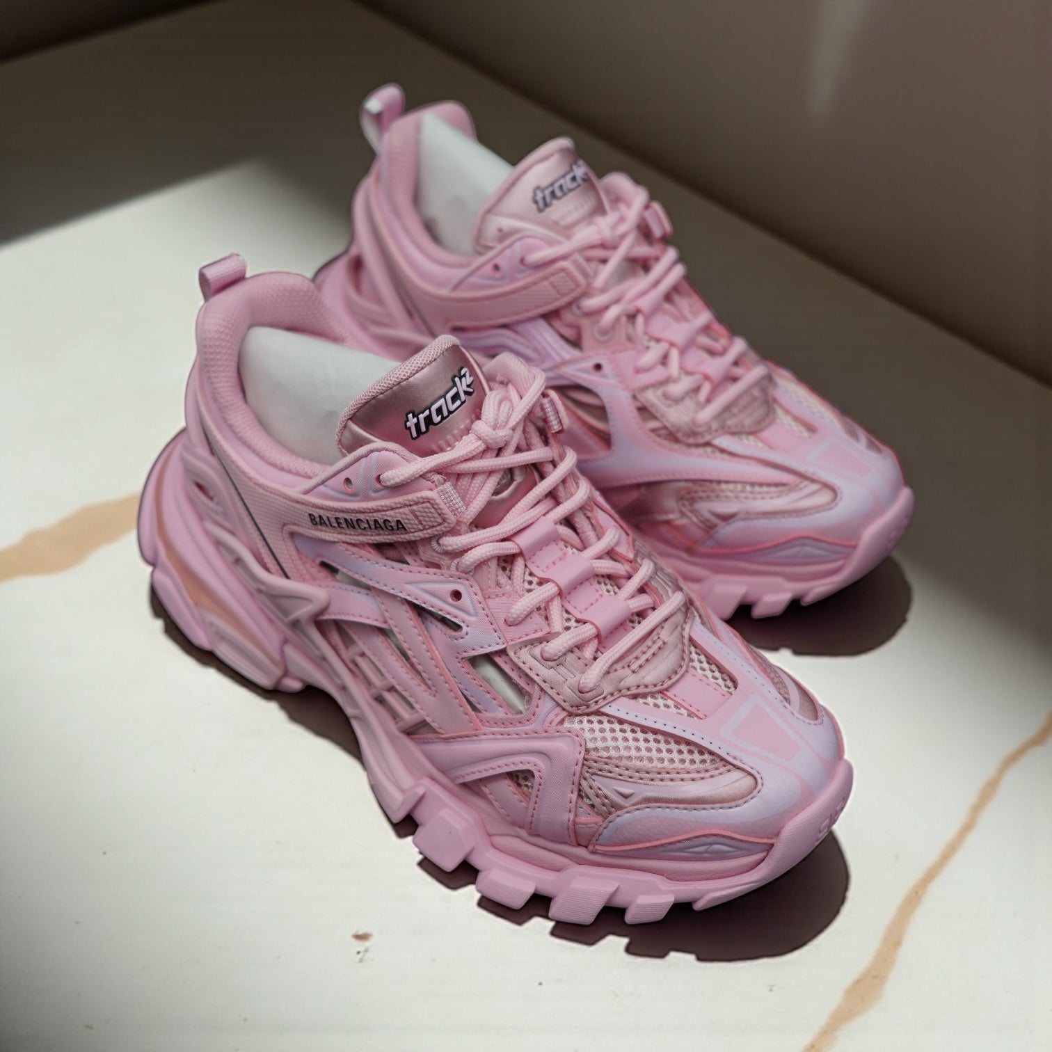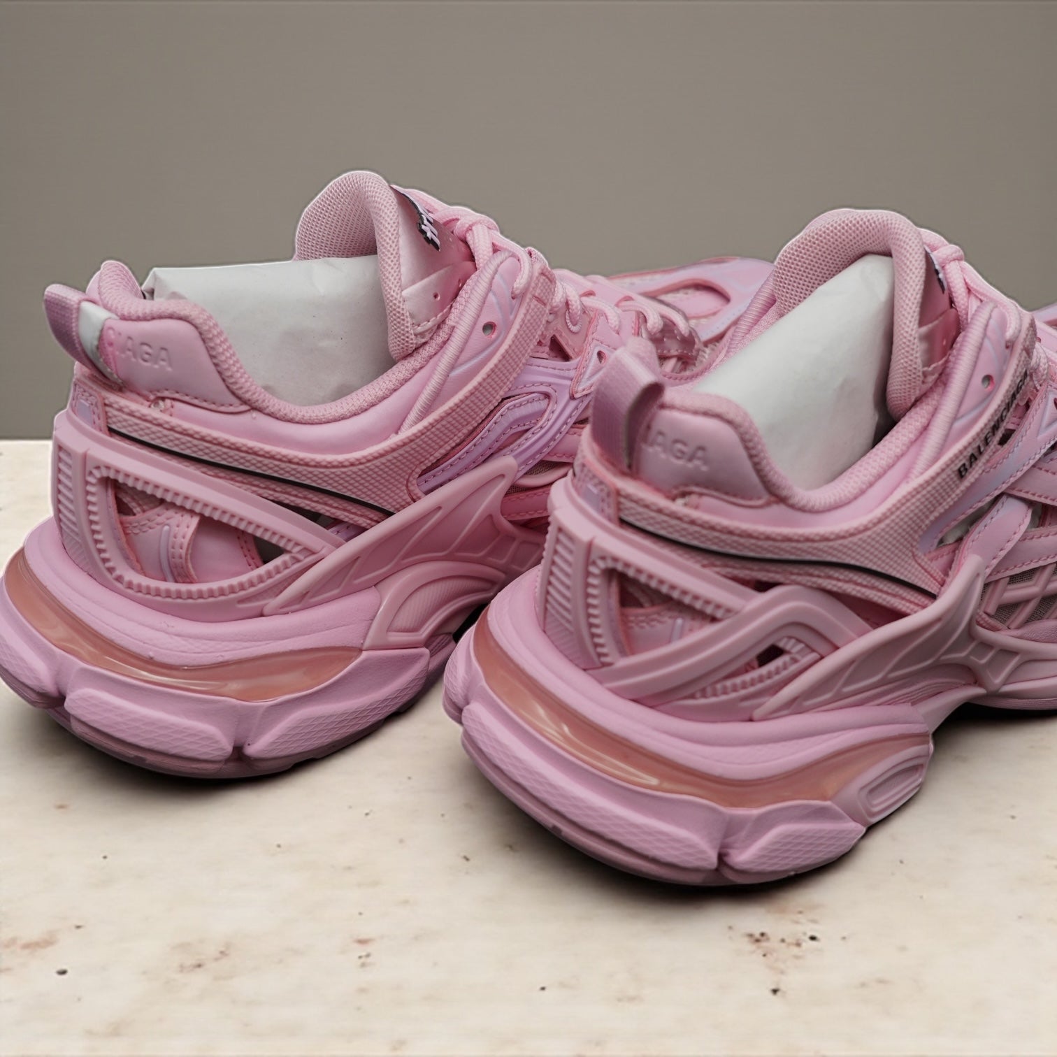 Le Balenciaga Track in rosa sono sneakers iconiche dal design futuristico e multistrato, pensate per chi ama distinguersi. Realizzate con una combinazione di materiali tecnici e mesh traspirante, offrono comfort e stile inconfondibile.