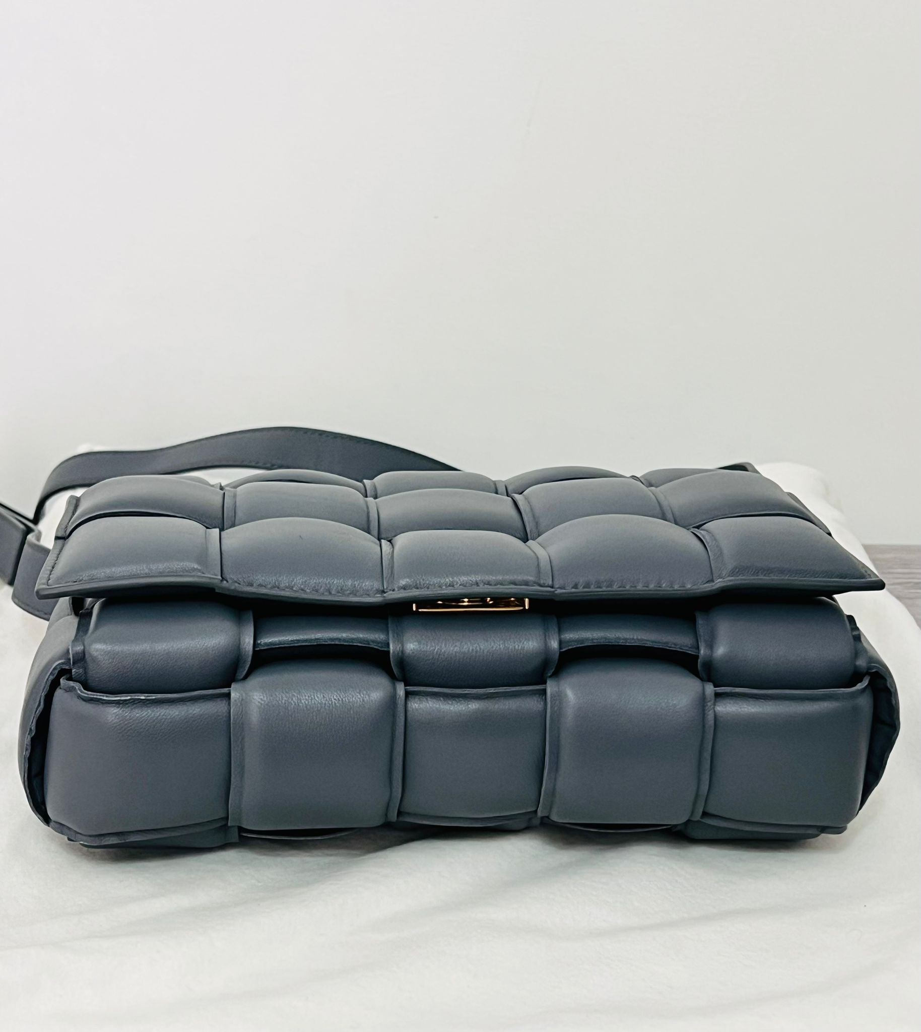 Iconica e contemporanea, la Padded Cassette firmata Bottega Veneta si distingue per il suo design voluminoso e sofisticato, caratterizzato dall’inconfondibile motivo Intreccio realizzato con nastri double-face in morbida nappa imbottita. Il colore grigio dona eleganza e versatilità, rendendola perfetta per ogni occasione.