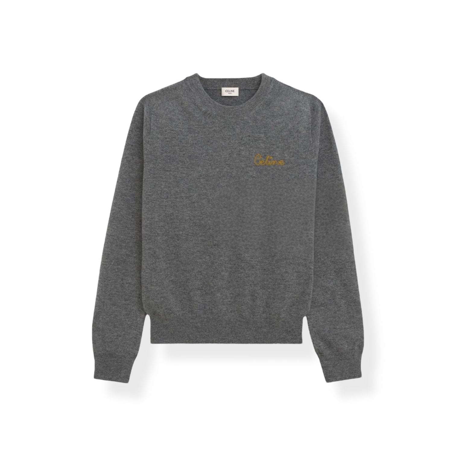 Elegante maglioncino Celine realizzato in morbida lana, dal design minimal e raffinato. La tonalità grigio neutro è impreziosita dal logo Celine ricamato in giallo sul davanti, che dona un tocco moderno e distintivo al capo.