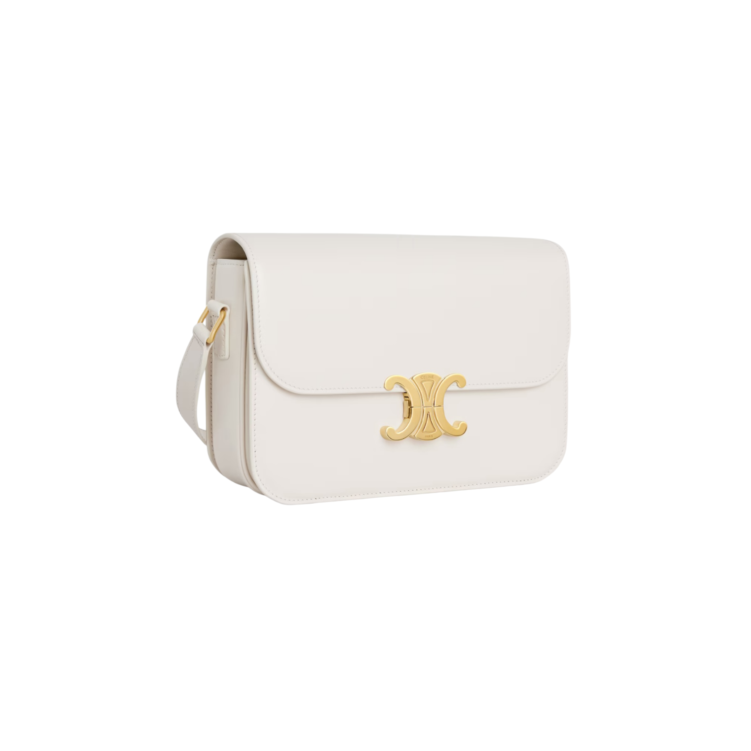 Celine Triomphe Classique Bianco in pelle di vitello lucida