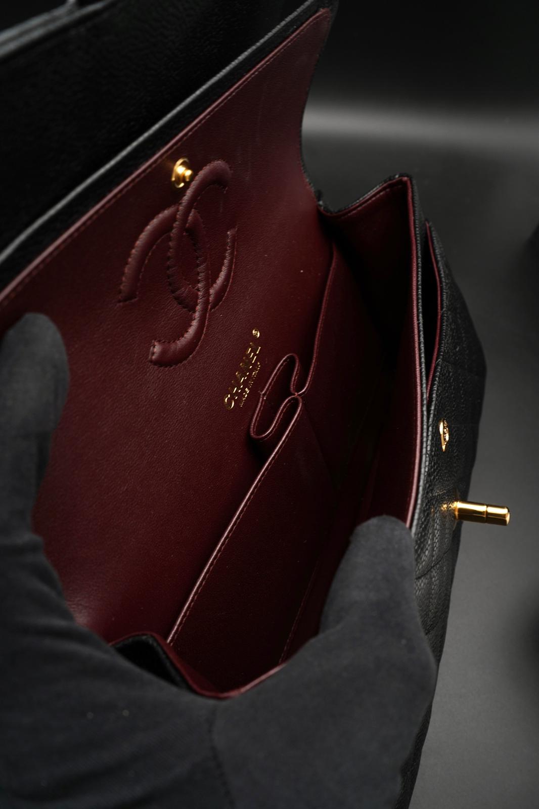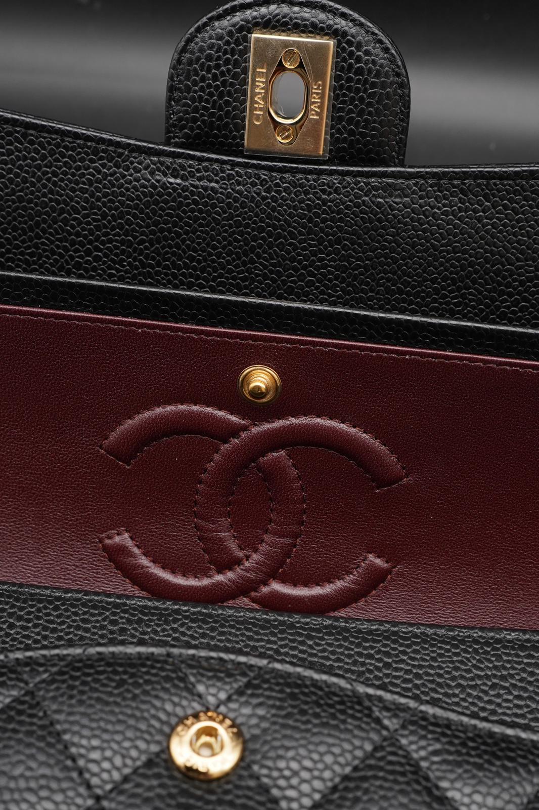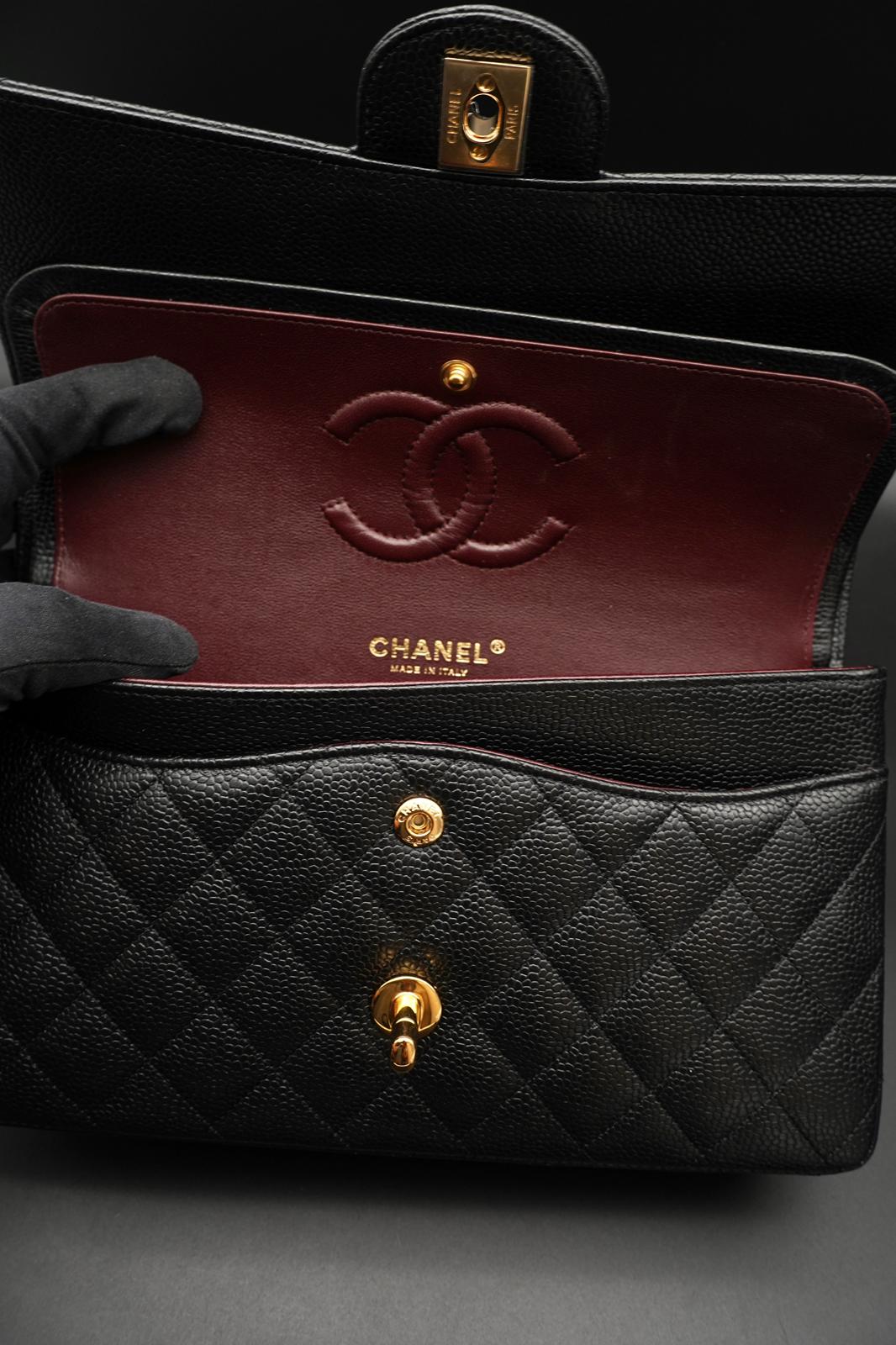 Chanel Classic Flap Bag - Pelle Nera con Interno Bordeaux