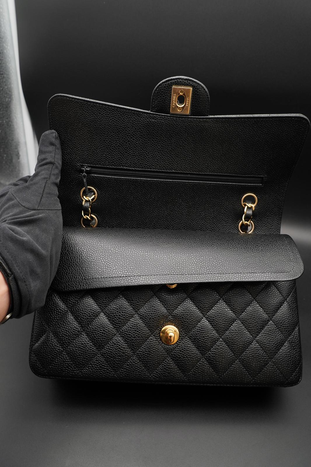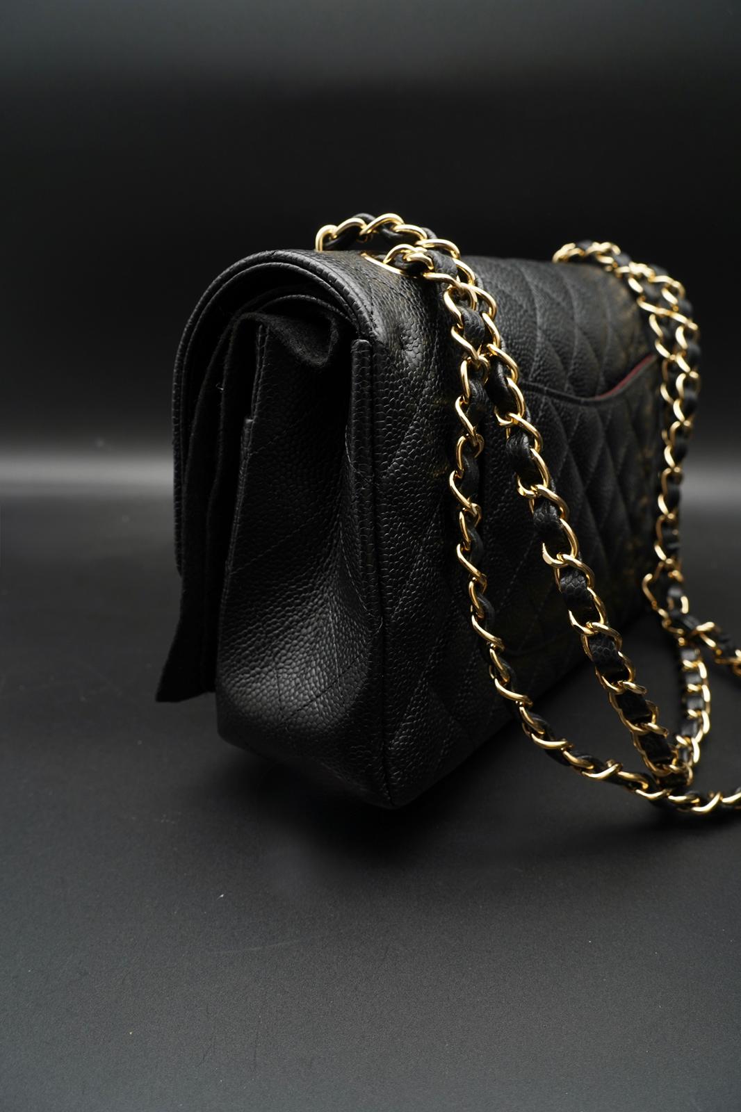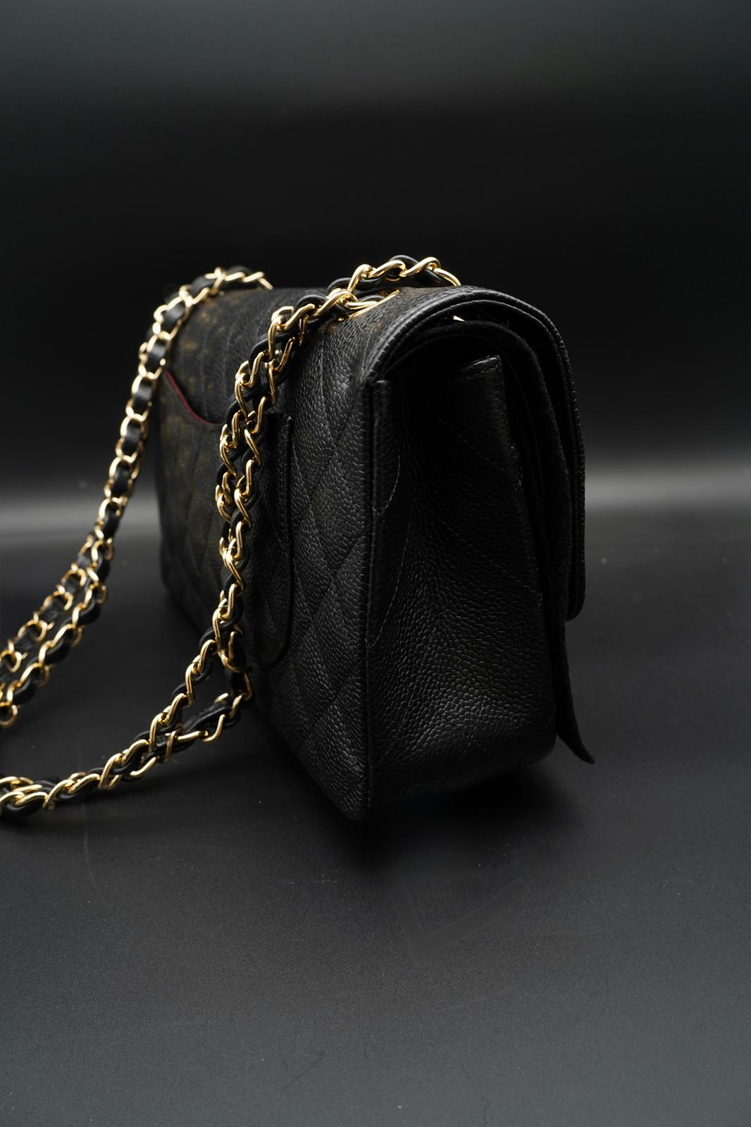 Chanel Classic Flap Bag - Pelle Nera con Interno Bordeaux
