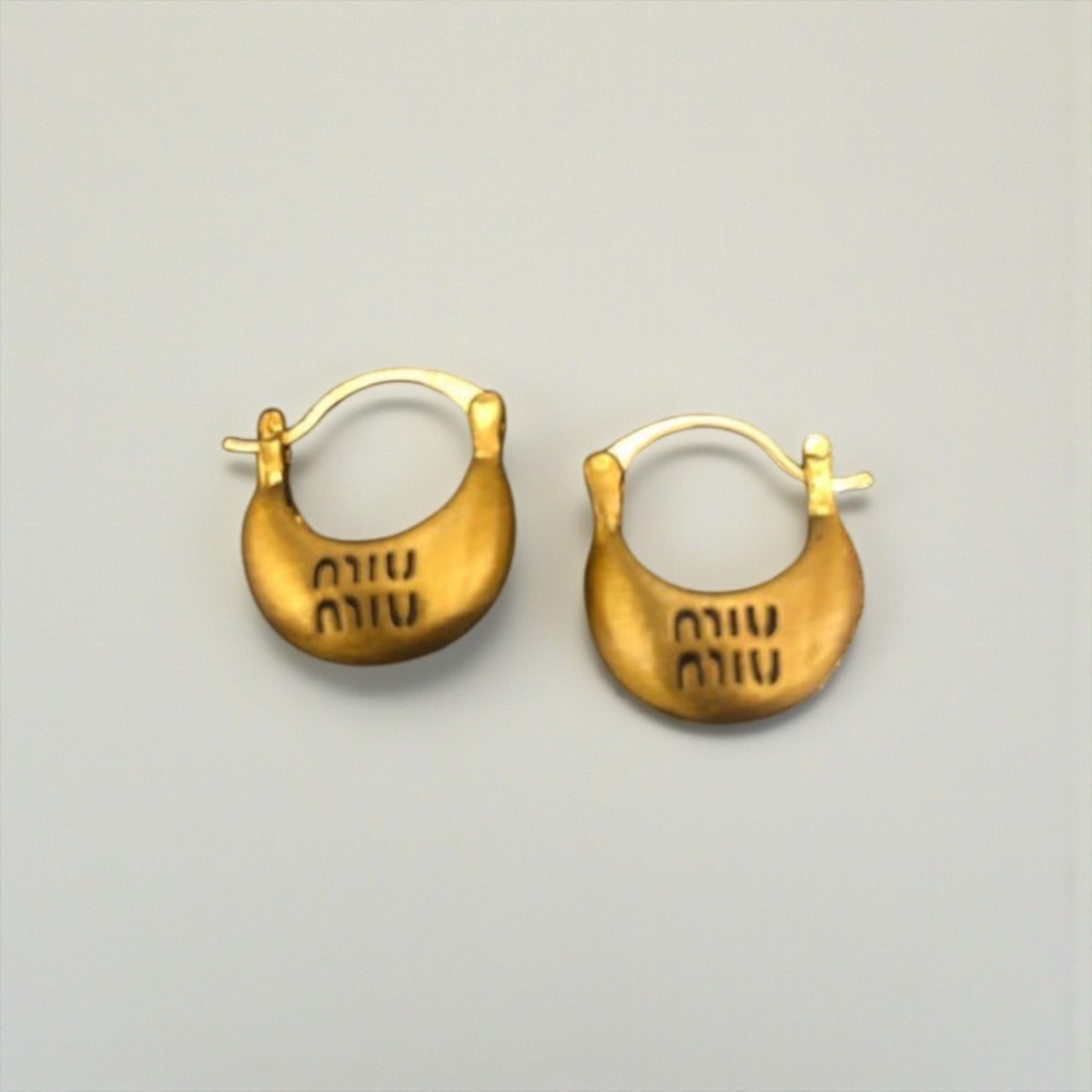 Eleganti e luminosi, questi orecchini Miu Miu dorati aggiungono un tocco raffinato a qualsiasi look. Il design minimal ma distintivo riflette perfettamente l’estetica sofisticata e moderna della maison.