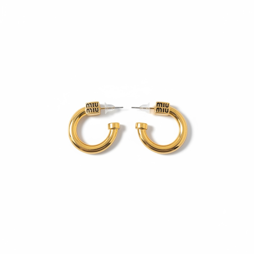 Raffinati ed essenziali, questi orecchini Miu Miu dorati presentano una silhouette a cerchio moderna e luminosa, impreziosita dal dettaglio con logo inciso sulla parte posteriore. Un accessorio elegante e versatile, perfetto per aggiungere un tocco di brillantezza a qualsiasi look.