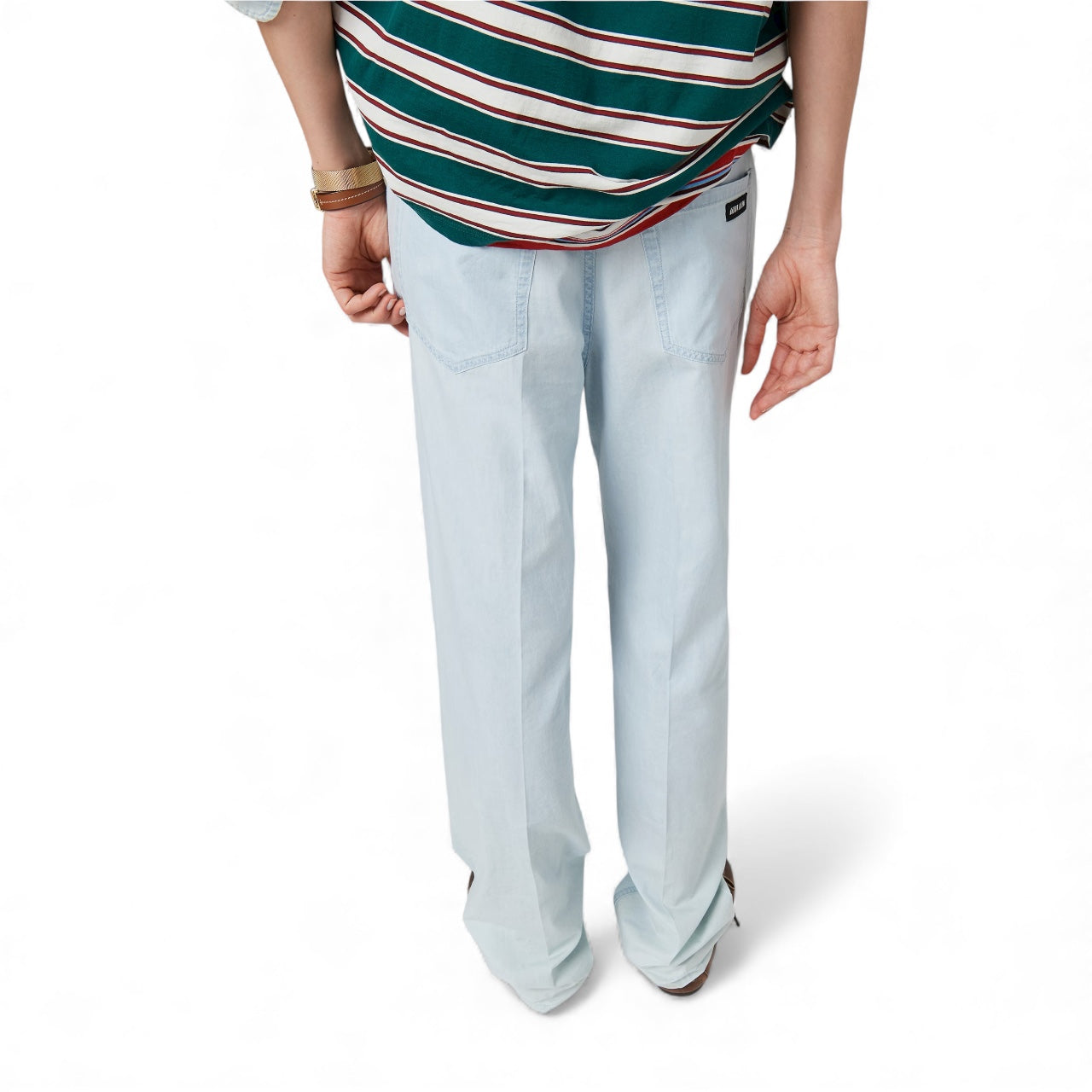 I pantaloni Miu Miu in denim chambray rappresentano un capo versatile e contemporaneo, perfetto per aggiungere un tocco di eleganza informale al tuo guardaroba.