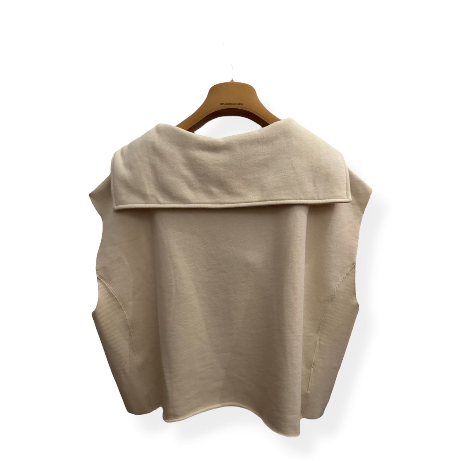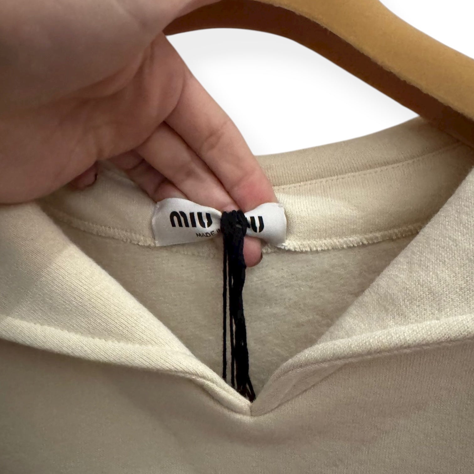 Il top smanicato Miu Miu avorio con scollo a V è un capo raffinato e versatile, perfetto per valorizzare con semplicità e classe il guardaroba quotidiano.