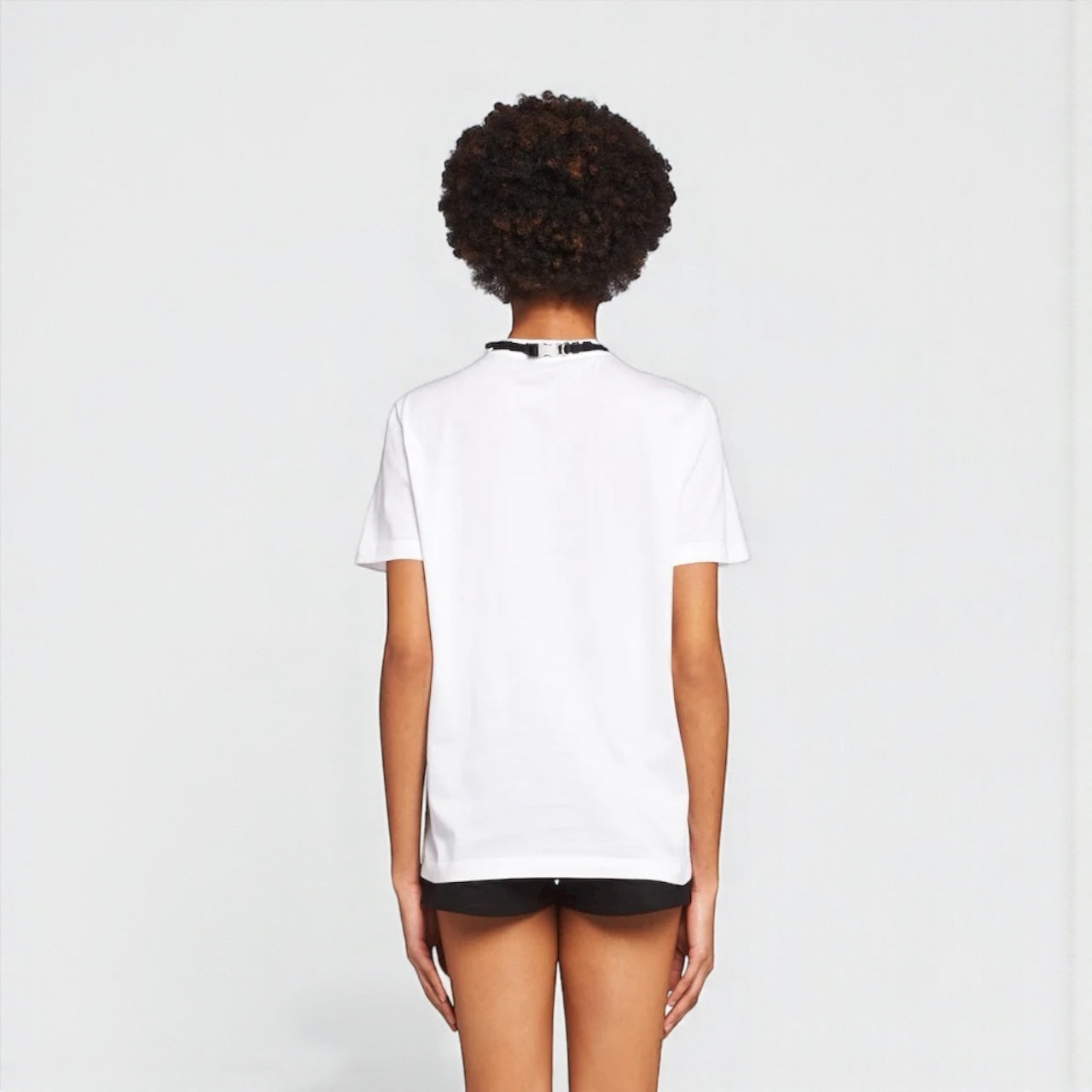 Innovativo e dal carattere distintivo, il girocollo Prada con bandana in jersey di nylon bianco e nero rappresenta la perfetta fusione tra funzionalità e stile contemporaneo. La texture tecnica e il design grafico riflettono l'estetica moderna e audace della Maison.