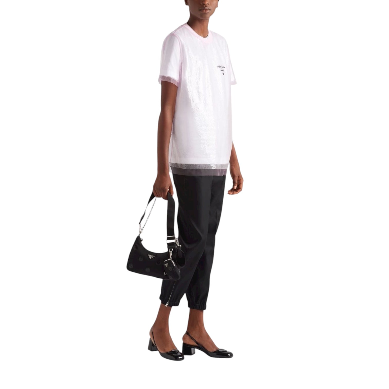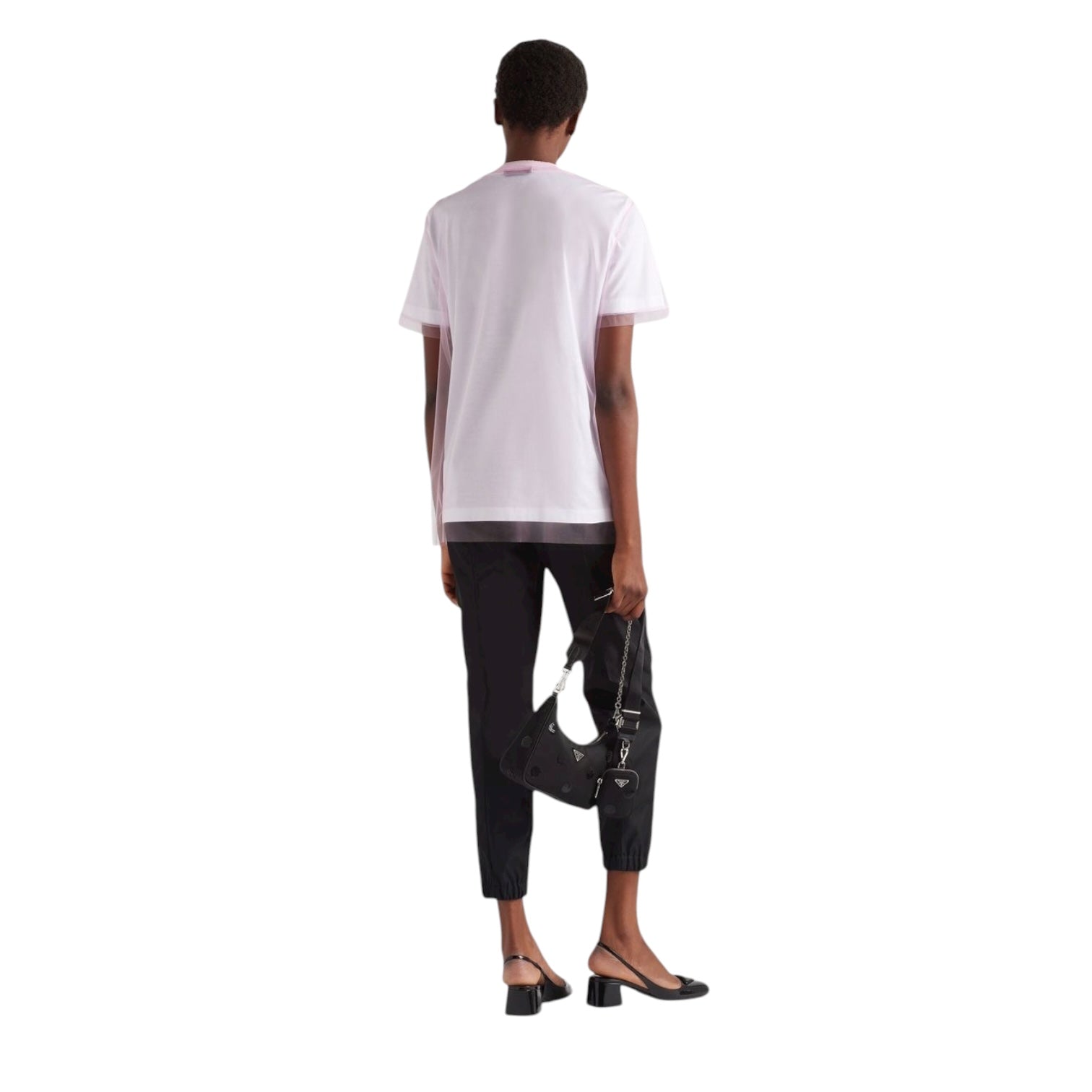 Prada girocollo in Tulle con Paillettes Bianco e Rosa