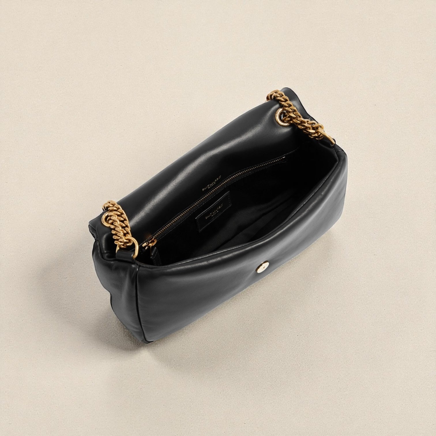 Raffinata e senza tempo, la Saint Laurent Calypso Small in plunged lambskin nero rappresenta l’eleganza moderna firmata YSL. Realizzata in morbidissima pelle di agnello, si distingue per le sue linee pulite e il design sofisticato che unisce minimalismo e carattere.