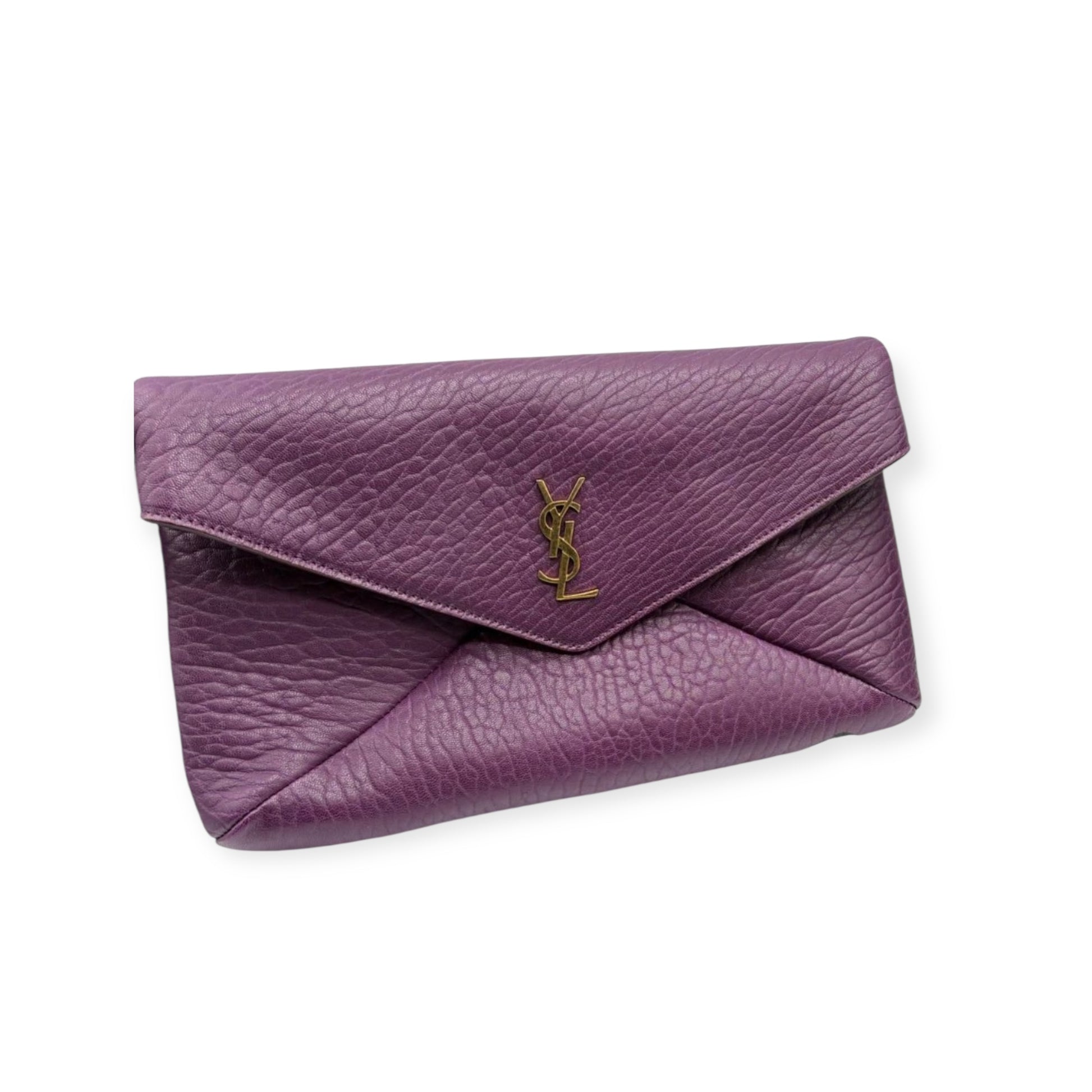 Saint Laurent Cassandre Large Envelope Pouch in Pelle Martellata Viola